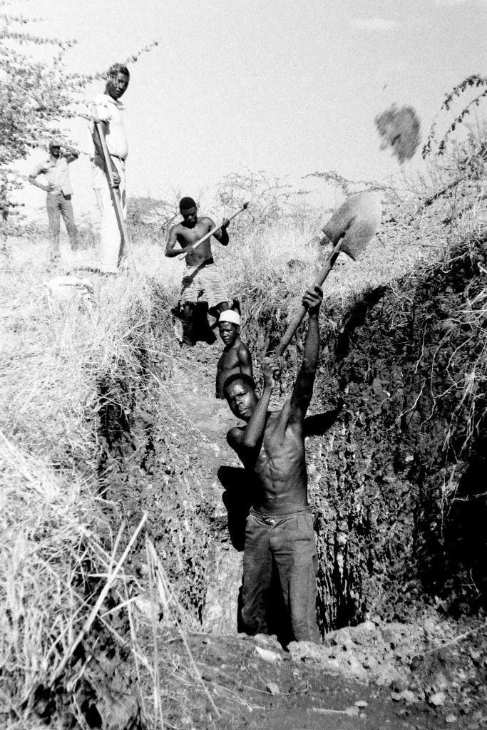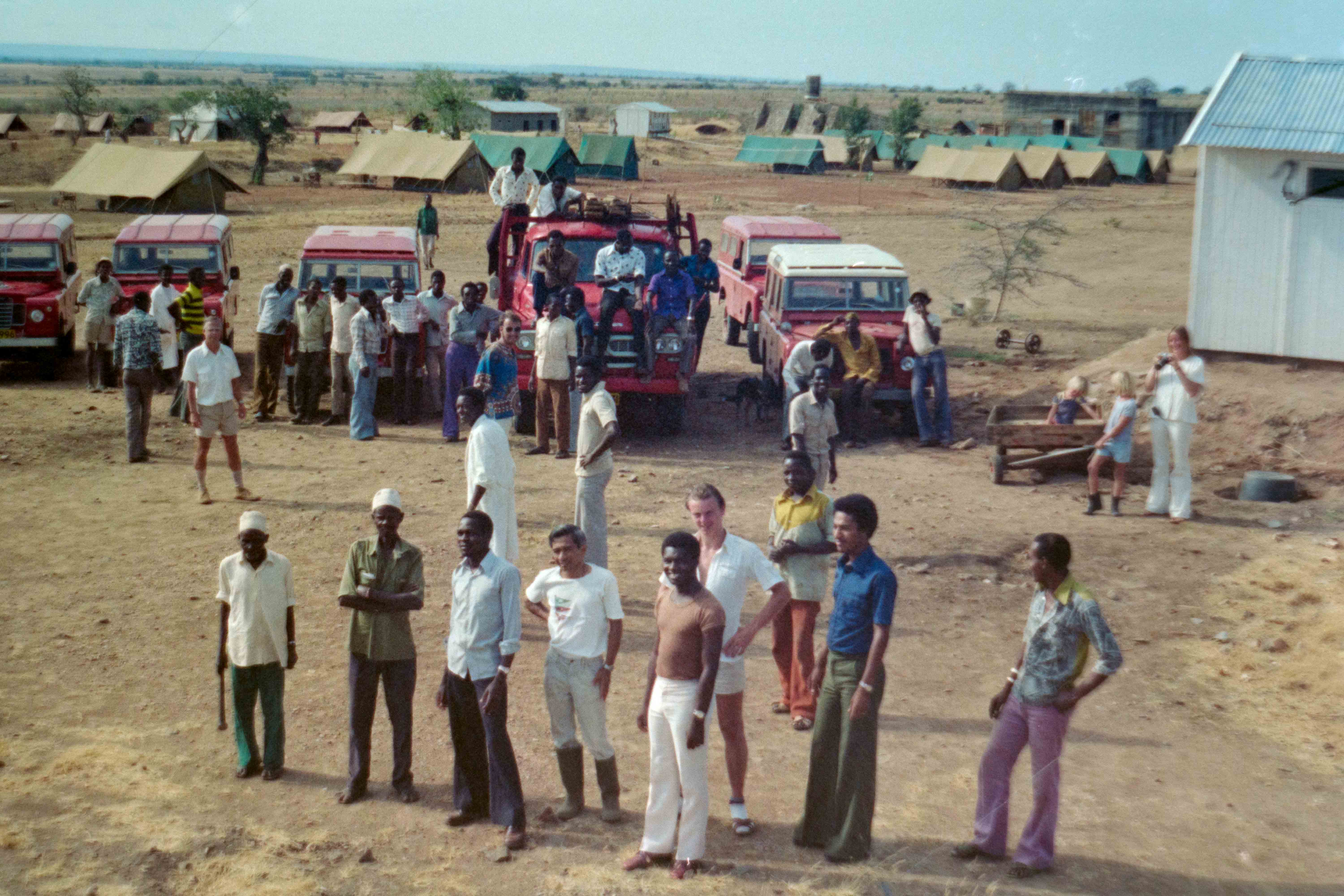 De Nederlandse ontwikkelingshulp zeg dat datgene dat je hier doet ten goede moet komen aan de basis van de bevolking. Nou daar werken we hard aan. In Dar el Salaam werd in het begin al Fl. 10.000 door deze basis. Hier krijgen velen, als er weer iemand terug gaat naar Nederland, al zijn kleren. Ze lopen er dan ook in de grootste lompen bij. Op sociaal gebied doen we hier veel. Onze lonen zijn met Sch 14,50 (=Fl 5,-) per dag hoger dan andere plaatsen (hoewel wettelijk vastgesteld). De arbeiders hebben na 3 maanden dienst recht op vakantie dagen en een uitkering. En een maand salaris bij ontslag. Wij zijn de enige die dat doen. Zelfs de regering projecten ontslaan na 3 maand en al hun arbeiders om aan hun eigen wet te ontkomen. Van de andere kant kun je zeggen dat er weer een andere groep mensen de kans krijgt om wat te verdienen. De werkeloosheid in nl. heel hoog. In het begin stond het hier elke dag zwart van de mensen die om een baan kwamen vragen. Nu nog zitten er hele dagen mensen om het kamp wachtend op werk. Soms komen ze van 100 km ver. Ze kennen hier wel pensioenvoorzieningen maar geen WW. Ze konden het zich ook helemaal niet voorstellen toen ik zei dat je in Nederland geld kon krijgen door niets te doen. De bevolking is over het algemeen heel vriendelijk. Als je hier over de kale vlakte rijdt met overal hutten, dan wordt er regelmatig naar je gezwaaid. Ook de meisjes worden hier, hoe langer je er zit, steeds mooier. Erg preuts zijn ze niet. Regelmatig stopt er hier een bus en stappen verschillende dames voor onze counterparts uit. ’s Ochtends vertrekken ze weer. Helaas zijn de tenten erg gehorig en staan dicht bij elkaar. Het is hier nu winter dus ongeveer 30 graden en droog. De hele dag waait het verschrikkelijk hard, zodat je vaak s ‘nachts denkt dat je tent weg waait. Het landschap is absolute niet tropisch. We zitten op een klein heuveltjes van 20 m in een uitgestrekte kale vlakte. Er heerst overal malaria. In het kamp hebben toto nu toe alleen de counterparts het gehad of schenen het te hebben, want vaak zijn ze niet zo werklustig en willen uit het kamp weg. De ziekenhuizen zijn hier gratis, maar erg vaak hebben ze geen medicijnen. Die kun je dan ’s avonds bij dezelfde dokter kopen als hij zijn privépraktijk opent!