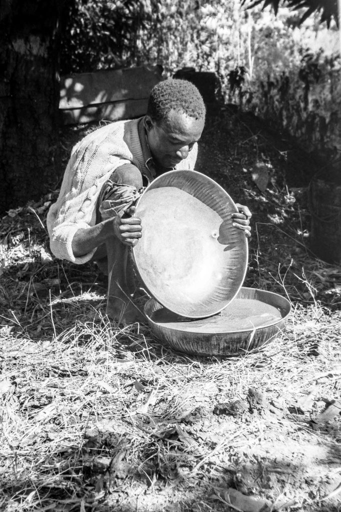 In het gebied lopen verschillende goud houdende kwartsgangen. Deze zijn op verschillende plaatsen al gemijnd. Van een stuk hebben we de kaart van de ondergrondse mijn. Aan het oppervlak worden overal tranches van 2,5 m diep en 10 m lang gegraven om de loop van de reef te bepalen. Helaas is de reef maar al te vaak te diep, zodat we hem niet kunnen vinden. Van de kwarts reef worden dan monsters genomen om het goudgehalte te bepalen. Tot nu toe is er erg weinig goed winbare reef gevonden. Pas vorige week vonden we voor het eerst een stukje waar je in het kwarts echte goudflakes kon zien. Die plek is nu dan ook door jan en alleman geplunderd.