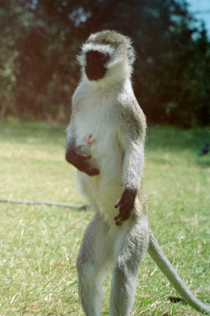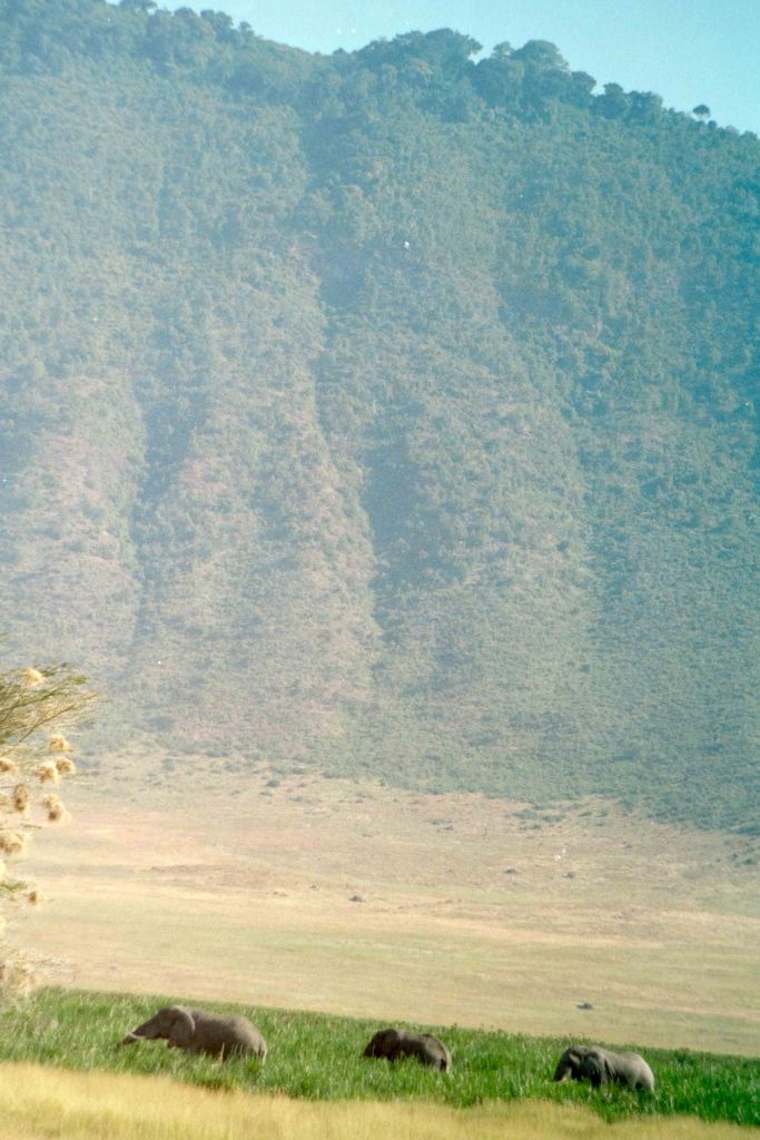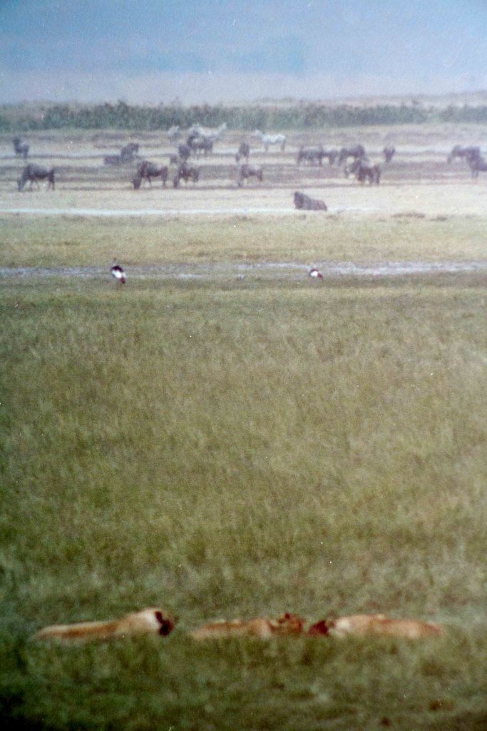 ’s Ochtend ’s bij het ontbijt werden we benaderd door een jongen (Zwitser) en een meisje (Duits). Ze sliepen hier in het dorp (20 Shl=Fl. 6,86 !). Ze wilden graag met ons mee de krater in. Met z’n 6 sen is een auto goedkoper dan met 2. Later kwam een Amerikaanse journalist er ook nog bij. Hij zoek hier een baan in het onderwijs. De auto koste 630 Shl (Fl 31,5), 30 Shl korting omdat ik Tanzaniaans resident ben. Weer meegenomen. We namen een tocht van 8 uur (werden er 7) In het begin waren er weinig dieren maar na verloop van tijd zagen we er steeds meer. Het meest waren de Gnoe’s (widebeesten) en de impala’s of iets dergelijks. Alle antiloop achtige kan ik niet uit elkaar houden. Op een plaats zagen we nijlpaarden, 2 x rinocerossen. Na wat aandringen en insinuerende opmerkingen over fooi reed de chauffeur ernaartoe. Ze beweren dat ze niet van de weg af mogen. Ik geloof dat het een show is om fooi te krijgen. ’s Middags kwamen we ook leeuwen tegen. 2 mannetjes konden we heel dicht benaderen. Ze stonden extra voor ons op. Leeuwen zijn eigenlijk niet zo interessant. Ze doen niets. Alleen maar liggen. In de verte konden we een groep zien die een of ander beest aan het verslinden waren. Vlak voor onze terugkomst zagen we er nog een met jongen. Olifanten waren hier en daar ook te zien. Reuze beesten. Ze lopen de hele dag te grazen. Een paar hyena’s en jackhalzen zagen we ook. De mooiste momenten waren als je ergens lang stil stond. Dan kon je goed van de rust genieten. In de auto zag je weinig als je niet door het open dak stond te kijken. Maar dan nog was het lawaai. Rus verstorend. De picknick was ook niet zo rustig vanwege alle apen die hun best deden wat weg te pakken.