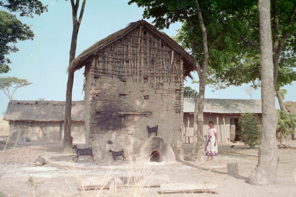 De tocht naar Tabora was prachtig. Jan en ik hadden het verdiend door 2 dagen dat de counterparts vrij hadden door te werken. Ik heb toen in het lab 2 dagen lang gemalen. Zelf had ik niet zo’n behoefte aan de reis naar Tabora maar Jan wel. Hij wilde der echt tussen uit. Wel wat snel na 5 weken kampleven. Ik was eigenlijk de enige die mee kon en wilde. Eerst waren er allerlei plannen om te gaan kamperen maar toen puntje bij paaltje kwam bleek dat toch een beetje te veel werk. Dus dan maar weg rijden en ergens een hotel op zoeken. We kregen een bestelwagen of hoe noem je die dingen mee en een chauffeur. In Nezega dronken we thee in een plaatselijk kroegje. De thee is vrij zoet en er zit van tevoren melk door. Wel lekker. Je kreeg er een of ander zoet stuk brood bij wat zij cake noemen. Op de markt ter plaatse kochten we kokosnoten. Bij een stalletje lagen lange stukjes hout te koop. Het leek op zoethout. Ik maakte een kauwende beweging en de dame achter knikte ja dus gekocht. Achteraf bleek het een inlandse tandenborstel te zijn die wel effectief was want de aanslag van de fluor in het water verdween ermee. Onderweg van Nezega naar Tabora kwamen we langs verscheidene grote hoge lemen huizen. Het bleken tabak drogerijen te zijn. Onder was een inlaat voor rook. De volgende dag heb ik er ook wat foto’s van gemaakt.