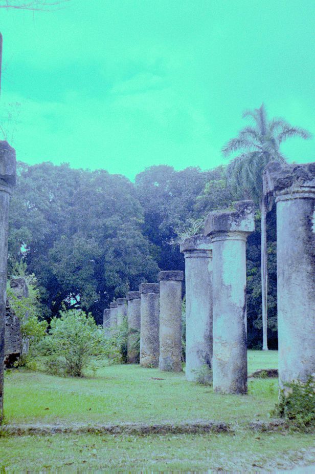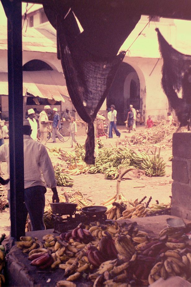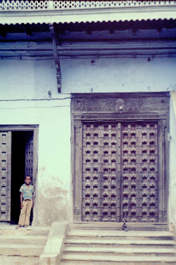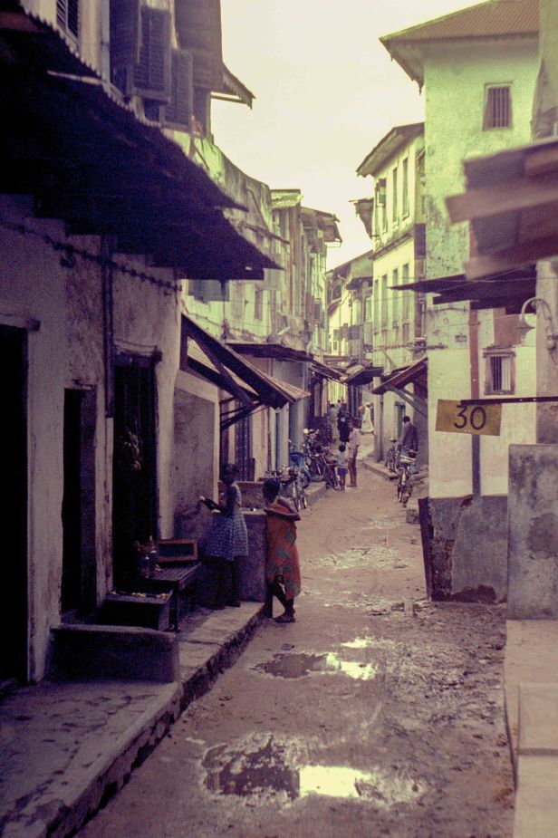 De stad Zanzibar is heel aparte. Hele smalle straten met hoge huizen. Overal rennen kinderen rond. Het regent er veel waardoor het niet zo’n schone indruk maakt. Direct na aankomst ging ik op zoek naar het toeristenbureau, maar het vinden daarvan was een diepe teleurstelling. Ik had een erge hoofdpijn en was moe. Ik voelde me ook knap geïrriteerd dat ze van niets wisten, niets hadden en achteraf ook erg duur bleken te zijn in de dingen die ze wel hadden. Ik ging op zoek naar een andere toerist met wie ik misschien gezamenlijk een taxi zou kunnen huren. In het Zanzibar Hotel kwam ik 2 Indiërs tegen die ook wat wilden zien. Er was ook een taxichauffeur dus na wat onderhandelen kregen we een dag rijden naar beneden van 500 naar 200 shilling. We zouden tot 6 uur rijden maar het werd tot 4 uur er was niet meer te zien en hij begon te zeuren.