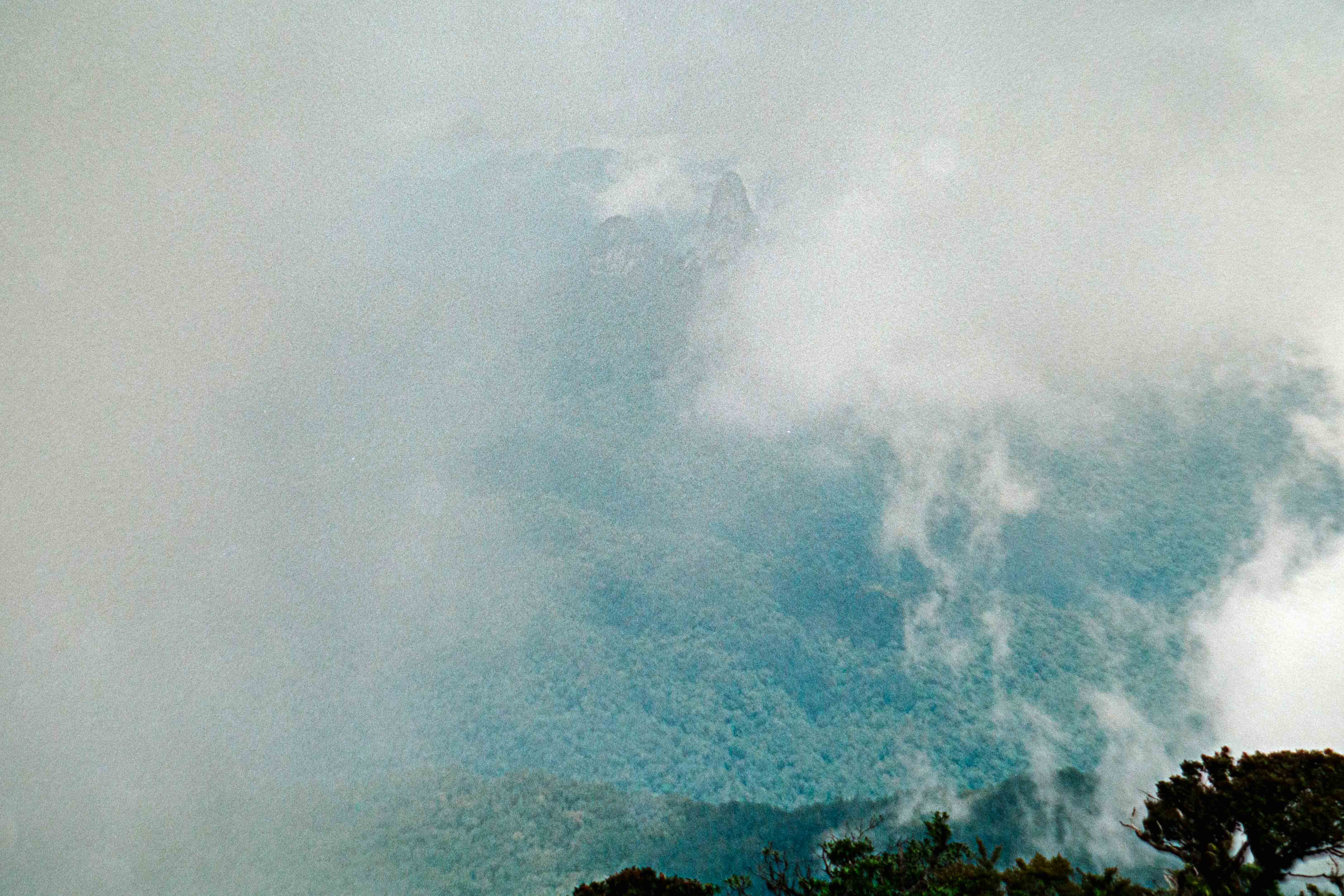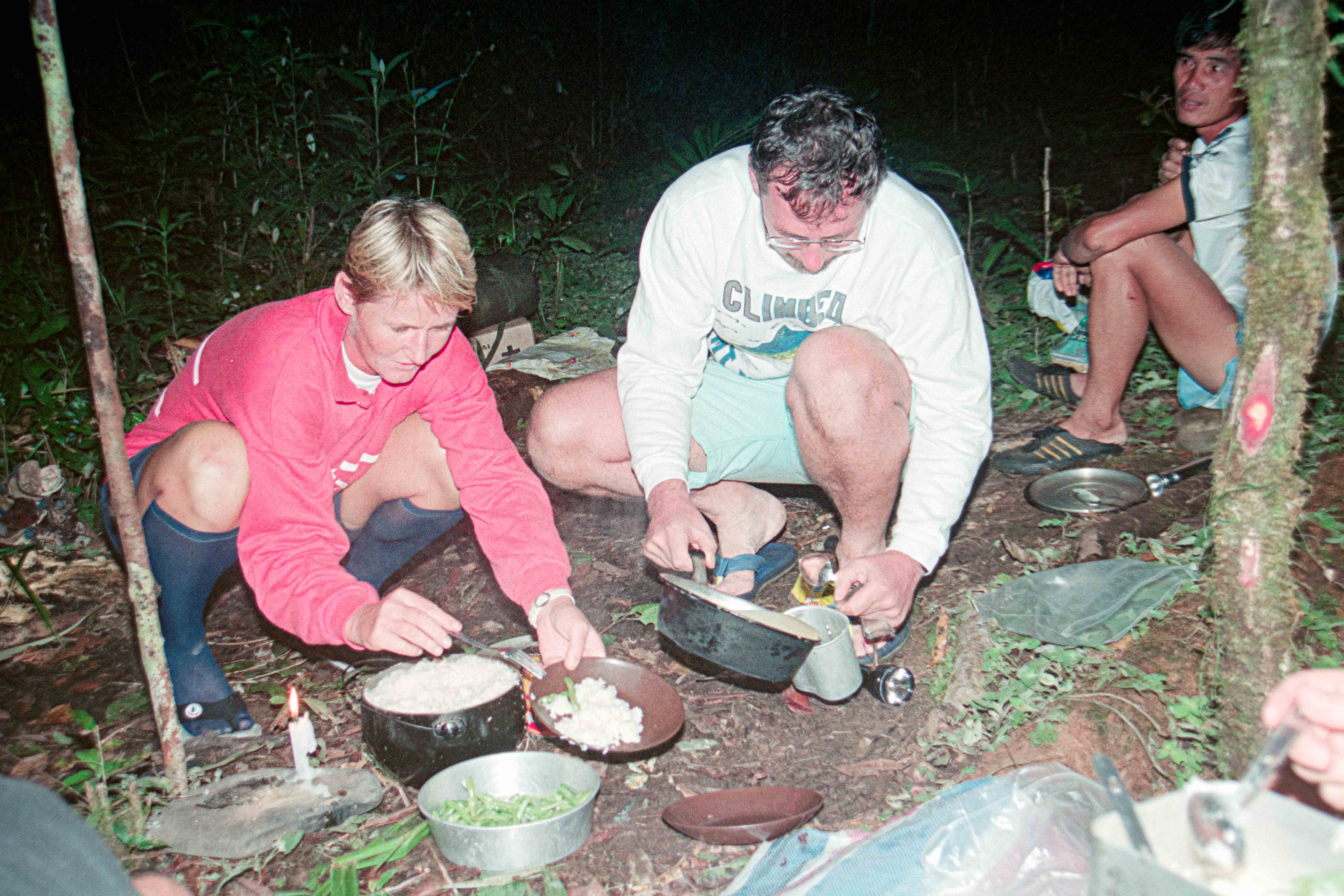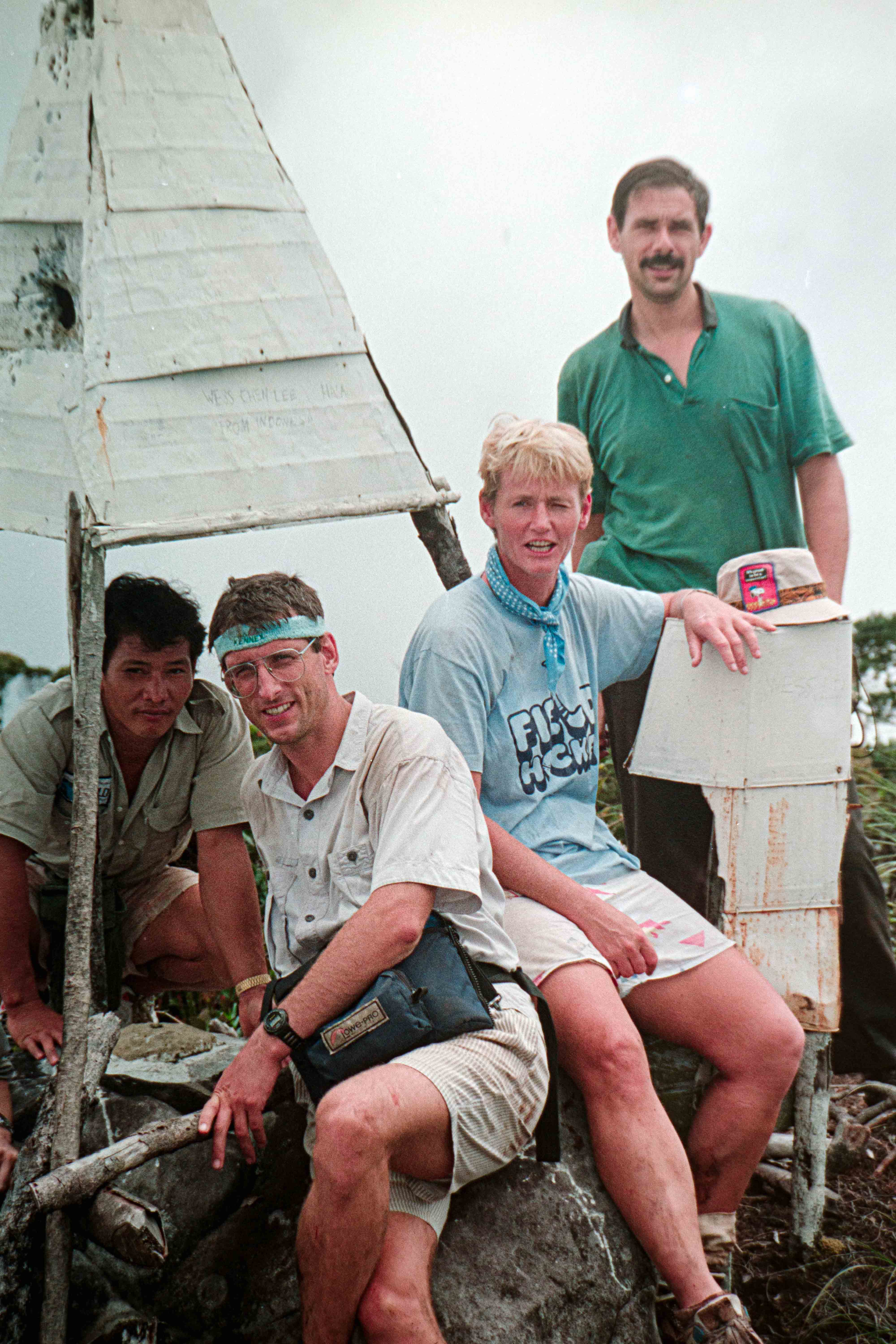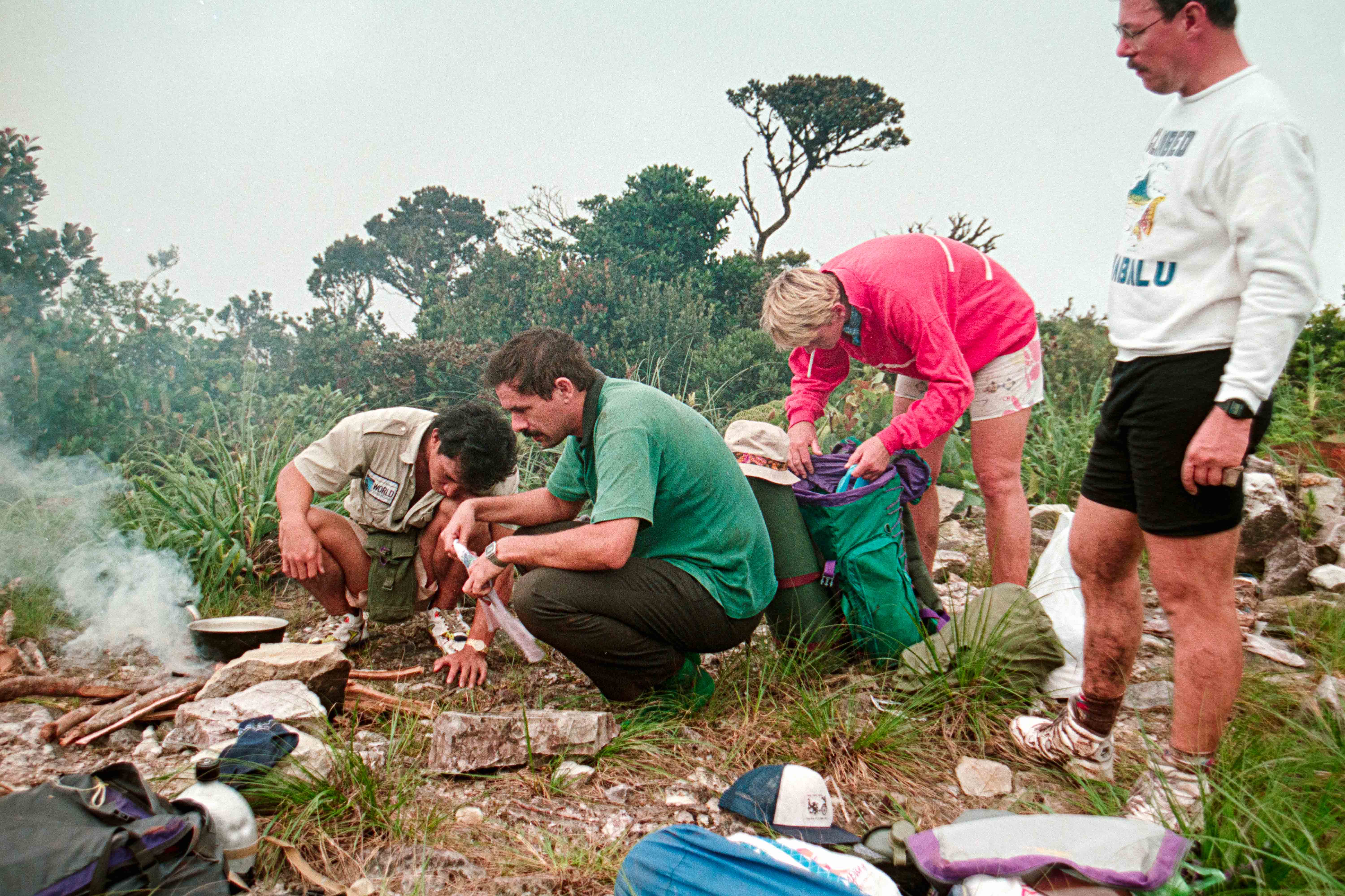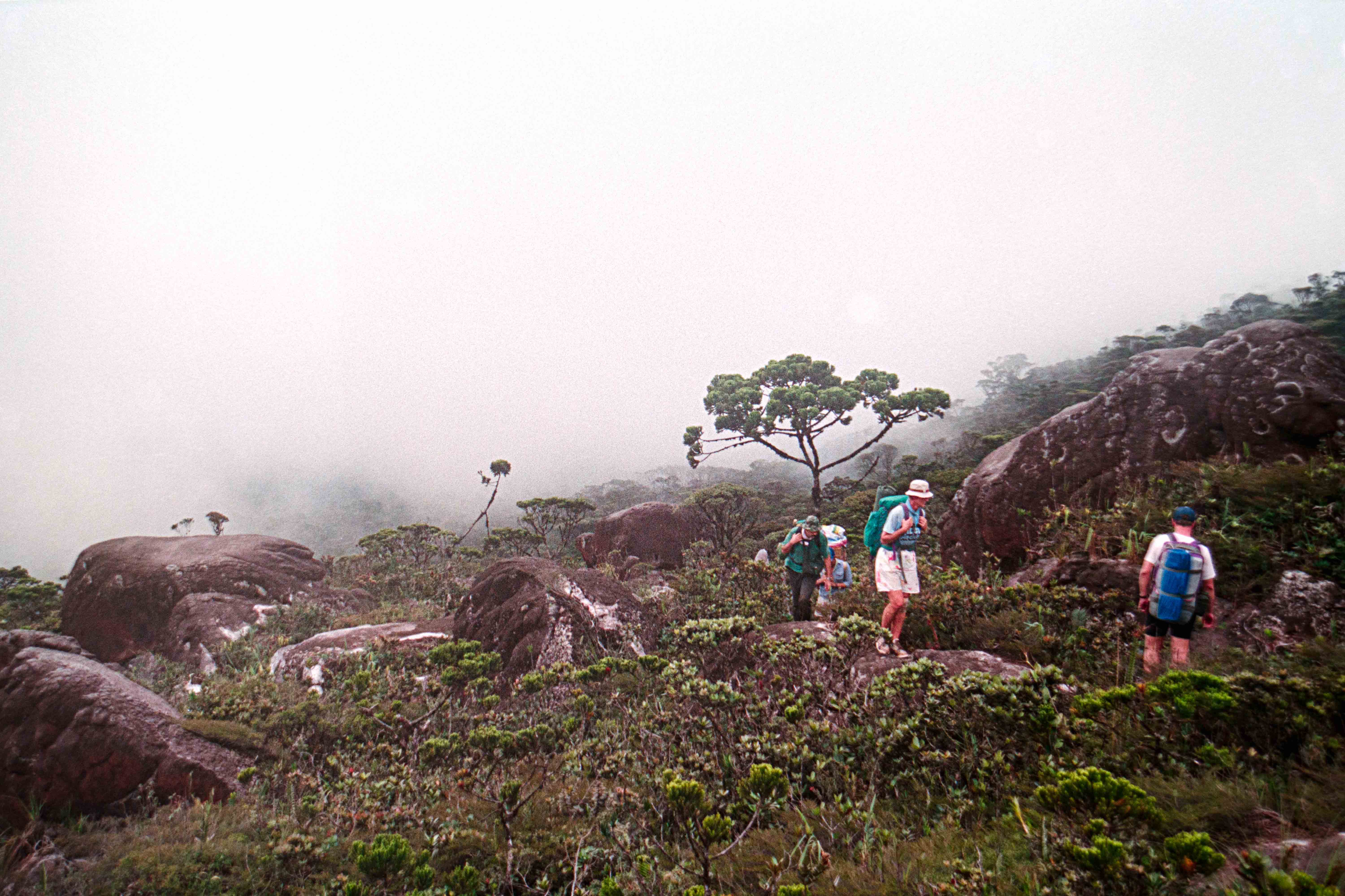 Het laatste deel Gunung Murud op (2484 m), lekker klimmetje door de mossige, natte Cloudforest”. Op deze berg ontspring de Baram rivier. Hier slechts een stroompje die Dapur rivier heet. Vanaf dit moment zijn Dio en ik Buffulo en Buffelientje. Het pad is wat glad en lekker balanceren en aan takken hangen. Wij dus constant op ons achterwerk en dan weer op handen en voeten omhoog en omlaag, we worden dus ook lekker vies en dat blijven we ook de rest van de trip.