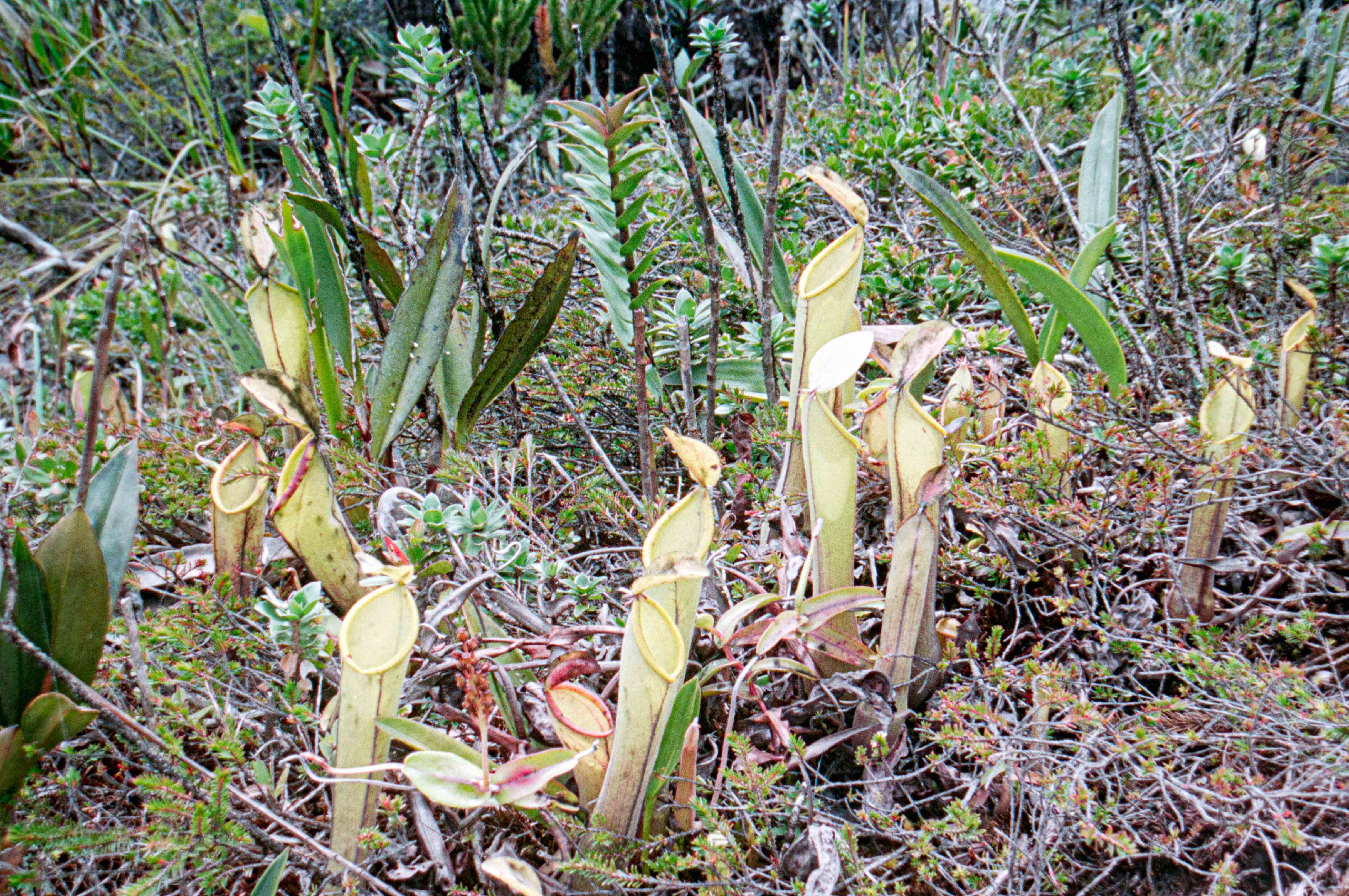 Laatste deel voor de top, prachtig veel pitcherplanten, alle kleuren soorten en maten.