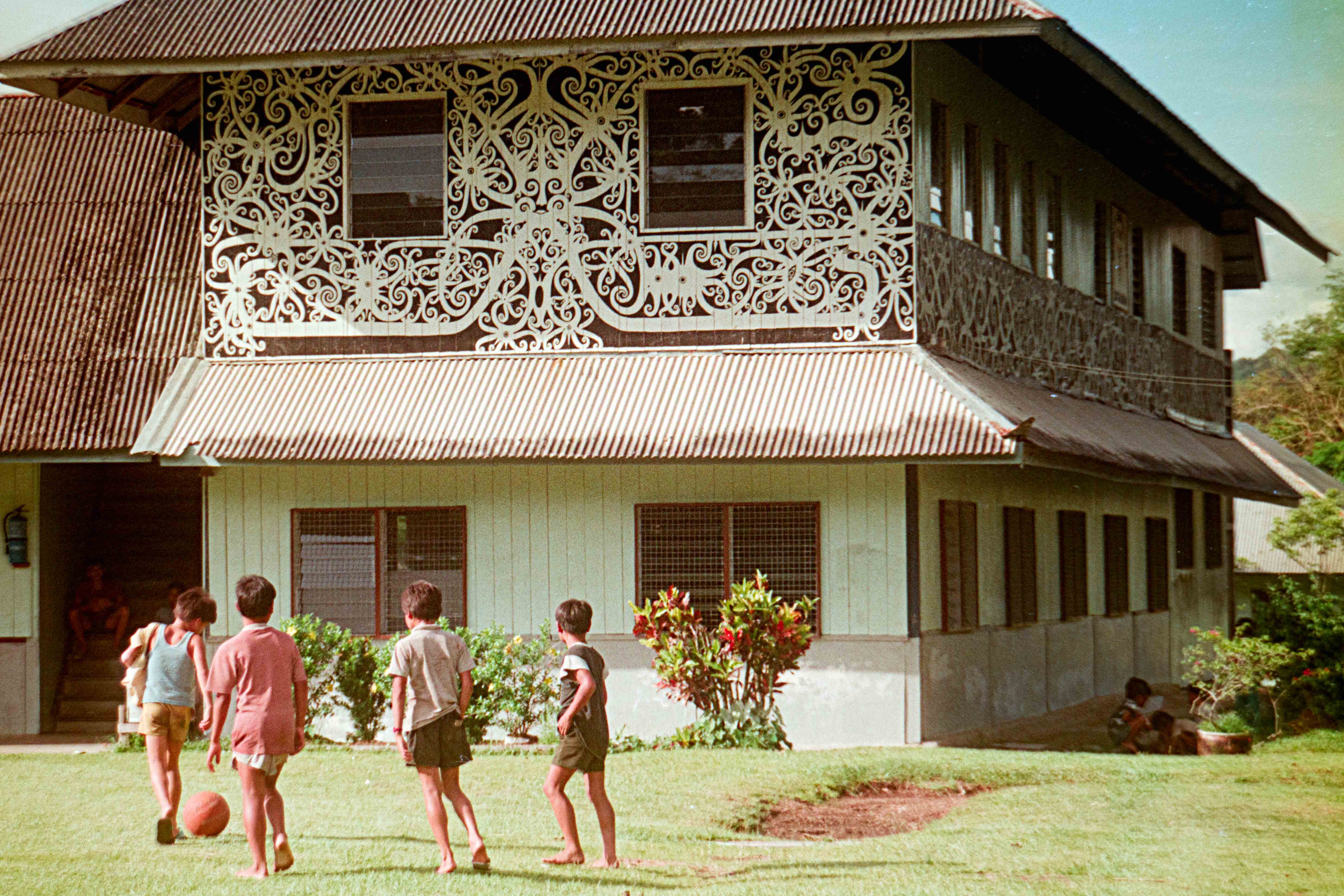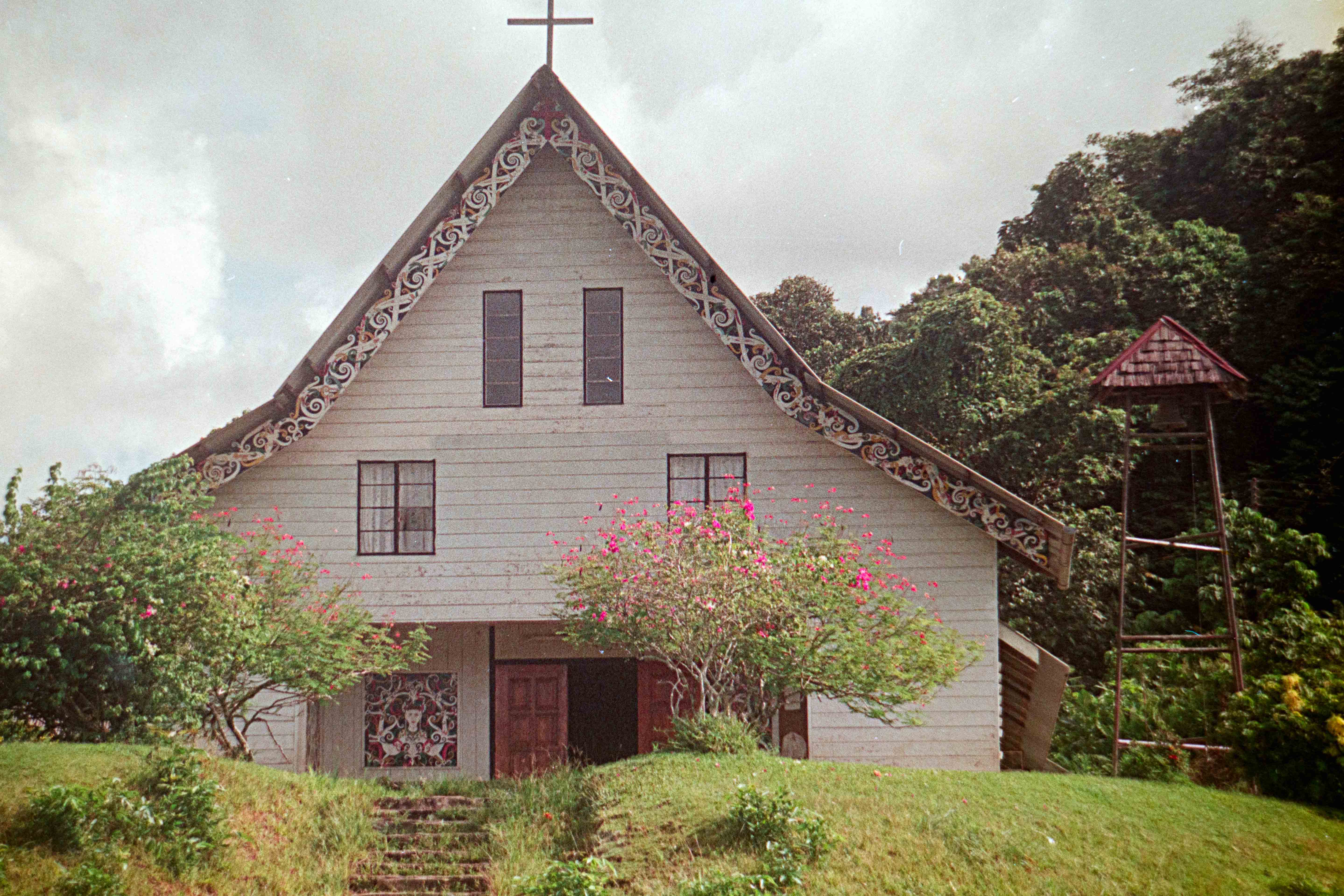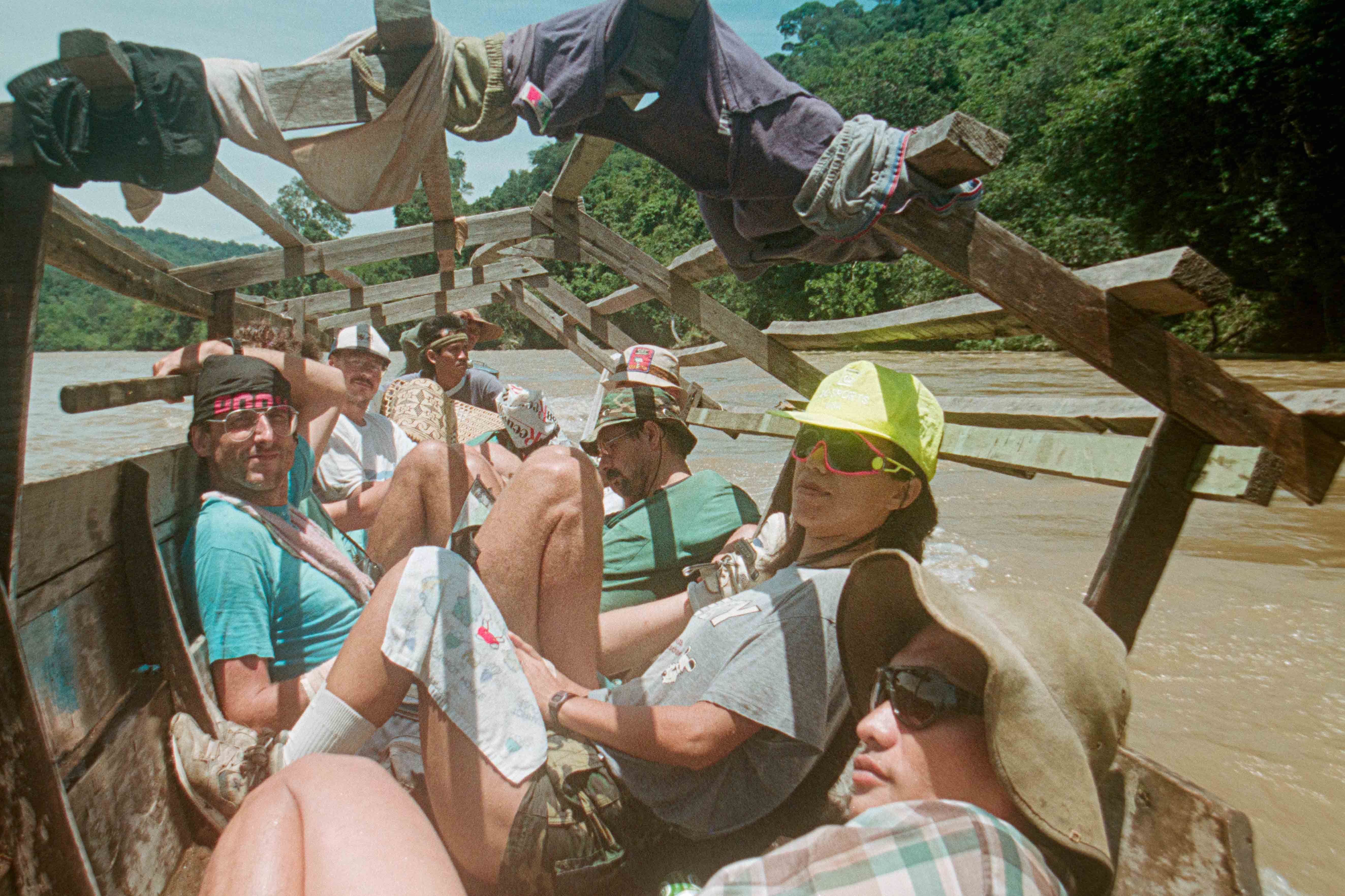Uit diepe slaap ontwaakt, ontdekt iedereen een mandibak en oh wat zijn we weer schoon. Het zit verder behoorlijk mee, er is een boot, de waterstand van de rivier is juist en met een 4 uur boottochtje komen we aan in Long San. Waar we onszelf met roodverbrande armen, benen en neuzen en ook nog houten billen uit de boot hijsen. Maar ik zou nog uren kunnen zitten. Dat gaan we dan ook de komende uren doen. Een echte restaurant maaltijd, lauw bier en je benen op een stoel is goed toeven, Het dorp wordt nog verkend. De lokale Nederlandse pater is er niet, maar we genieten van een kinderkoor. Edwin “de Bont” heeft zich voor deze dag verkleed als Swiebertje, met het gevolg dat we halen alle zwart wit tv-programma’s weer uit de doos. Vanwege de intensieve logging in de omgeving is Long San met een weg verbonden met de Miri-Bintule highway. Er is een ferry over de Baram en er wordt ook een brug gebouwed.