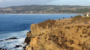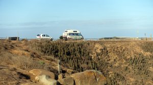 Before Pichilemu we turned off to Punta de Lobos. This is a rock sticking out into the pacific and as such generates a breaking point for the large oceanic waves. It is a surfer’s paradise. We arrived late in the afternoon and it was crowded with surfers and onlookers. We squeezed the camper in-between other cars and patiently waited till most of the cars left so we could correctly parked the camper. Already at 8:00am the next day the first surfers were in the water. We heard several people speaking American English so it must be a well known spot.