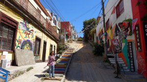 In the morning we programmed the Garmin to a parking area in Valparaiso. It was just a few kilometers away but what the map did not show are the narrow streets and steep hills we had to negotiate. We had to backtrack several times because it was not possible to follow the route the navigator indicated. Again Jamaliah was reaching the point of stepping out. Another harrowing experience and full blown panic attack (again). In the end, common sense prevailed and we just drove all the way down to the coast and then followed it till we found a parking place. No more shortcuts across the valleys from one hill to the next.