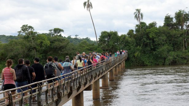 In total we spent some 8 days in Foz do Iguacu till theturbo was repaired. While waiting, we took a bus tour to the waterfalls on the Argentineanside. Again everything was well organised (tour guide handled all passportformalities in and out Brazil/Argentina) and Jamaliah finally had the feelingof a real vacation. We stayed in Hotels, eating in restaurants and touristingby touring car.  The falls on the Argentineanside are even more impressive than in Brazil. There are two well marked andpaved tracks through the jungle to different viewing point where at times, youare below the falls and other time above it. At the end of the track, there isa train ride and a long walking bridge to just above the Devils’ Throat. What astrong current, and to see the water fall right under your nose. It was crowdedbut bearable. Anyway, you cannot expect to be alone at such a natural wonder ofthe world.