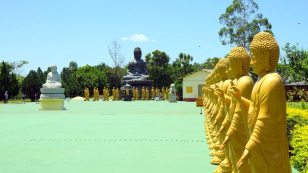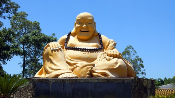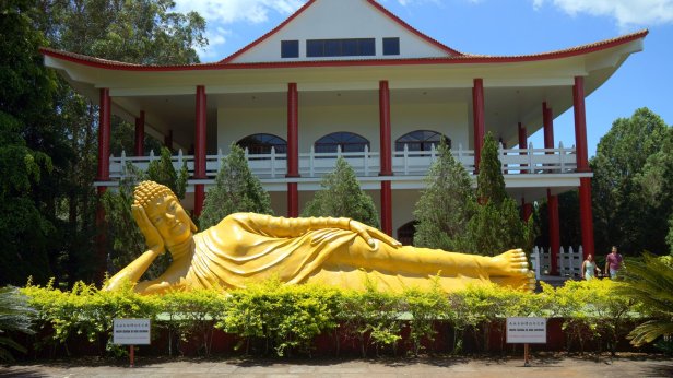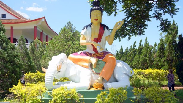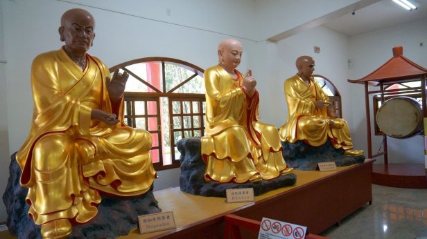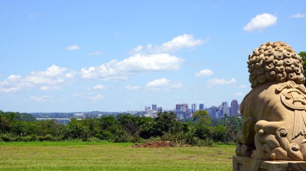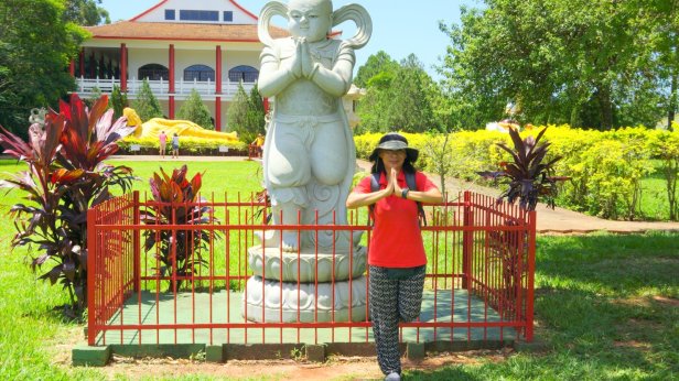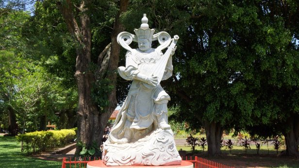 Since it was weekend (free day at the workshop), we amusedourselves in town. We discovered a Chinese restaurant. It was always closed bythe time we got there for dinner (9pm). On the third attempt we were therebefore closing time and had such a lovely Asian meal that we went back againthe next day. Price is reasonable and huge serving (one dish of food is goodfor three people). There are also several Lebanese shawarma cafes near thehotel as well as local street vendors selling the local cuisine (rice, blackbeans, fries and chicken or beef, or hamburgers on bread). Sunday we took thetaxi out of town and visited a Buddhist temple. It must have been built duringthe building of the huge ITAPU dam for all the Chinese workers. This templemust have been privately funded give the many statues with names of Chinesecitizen from all over Brazil.