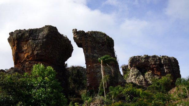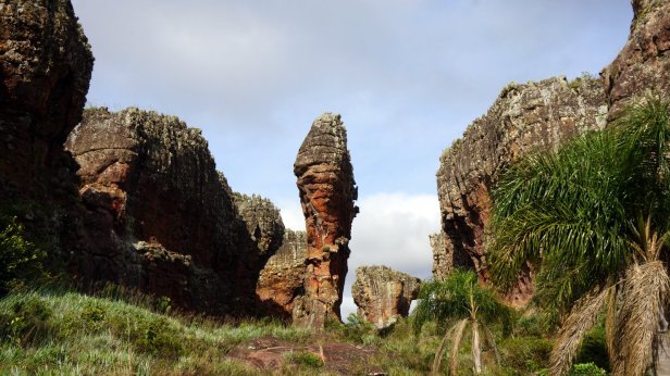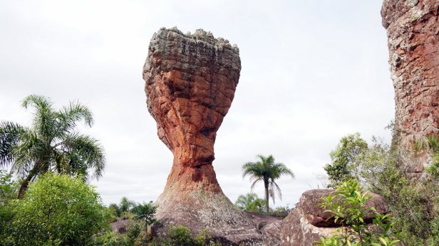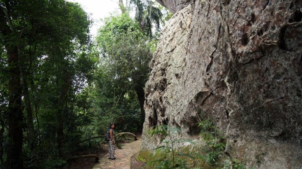 One at the Vila Velha. This park offers a guided walk aroundan outcrop of ancient glaciers sediments. Due to erosion the sandstone has manyrecognisable shapes which the guide was eager to point out. One side of theoutcrop was cleared and the return walk is through the original jungle.