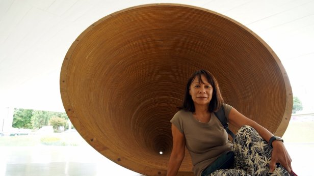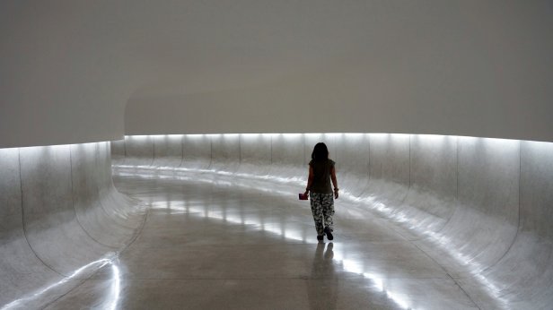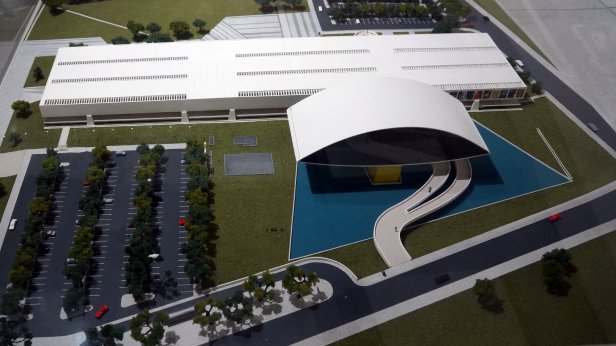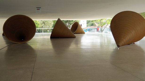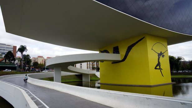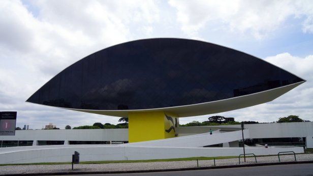 The other stop was in the large city of Curitiba where wedrove successfully through the busy streets and parked at the Museum OscarNiemeyer. Oscar is a famous architect who designed the new capital Brasilia.The museum is also housed in one of his creations, recognisable by the large eye-shapeddome in front of it (he did not like straight lines).
