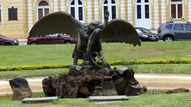 After a slow start of the day we picked up the camper onSunday and followed Johnny on his motorbike out of town and up the mountain(823 m) to Petropolis. Here, the emperor had built his summer palace. Wemistook the large Casino for the palace which resulted that we were actuallytoo late to enter the palace proper. We walked around it and through the treefilled garden and visited the carriage house and the village church. During theevening the town was getting more busy instead of less. Maybe people were comingto see the Christmas decorations in the street. We were planning to stay overnighton the street around the cathedral but that was not possible. So we drove a bitfurther and parked at a hotel spot we read about in iOverlander. Unfortunatelywe were not allowed to stay in the camper and since our Portuguese is nonexistentand the receptionist doesn’t speak English or Spanish we couldn’t convinced himto let us sleep in it. It was too late to drive on to find another camping spot,so we decided to spend the night in the hotel.