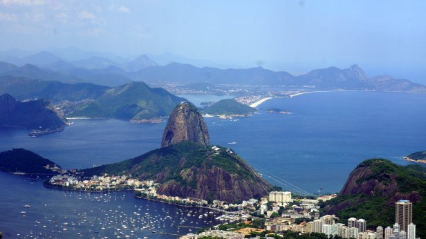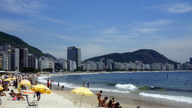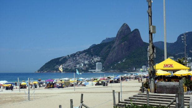 On Wednesday the skies were clear, so we made a trip to the famous Christo Redentor statue on top of one of the many mountains surrounding the city. We first walked along the Ipanema and Copacabana beaches. There were quite a few people on the beach despite that it was a normal working day. The beach in an integrate part of the life of the people living in Rio. Early morning (6:00) you already see the runners, walkers and cyclists on the beach. Later around 8:00 the first beach chairs and umbrellas are set up and the sun worshippers arrive. In some places the beach sand is cooled down with a water spray so you can reach your deckchair without burning your feet.