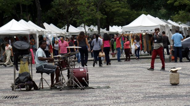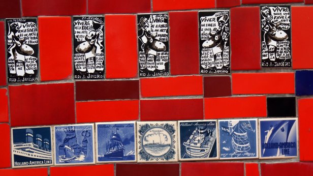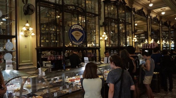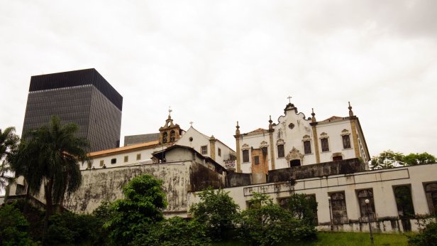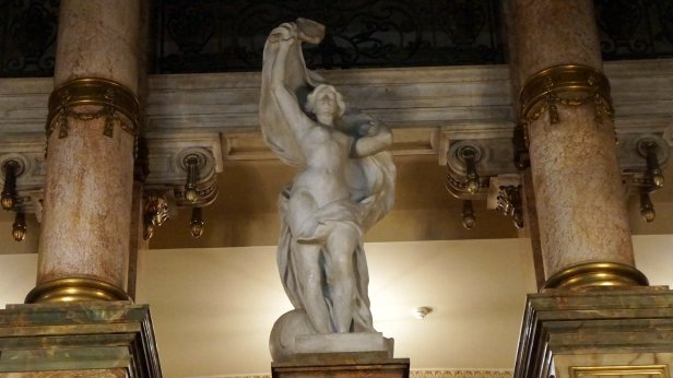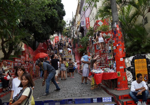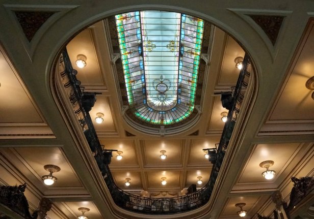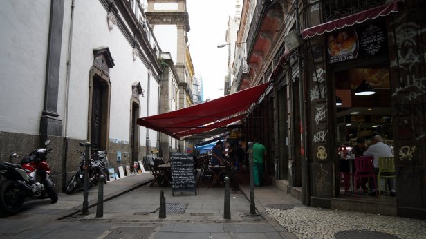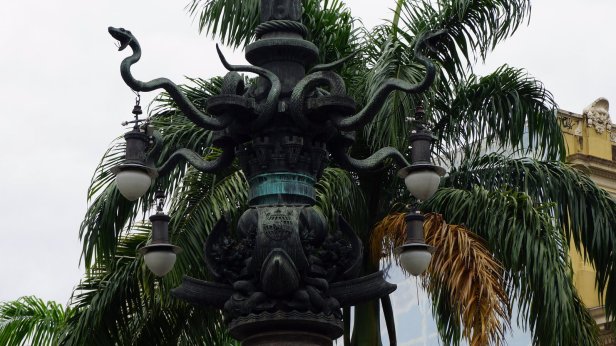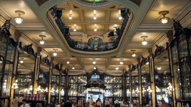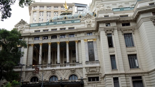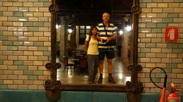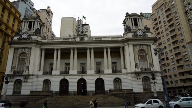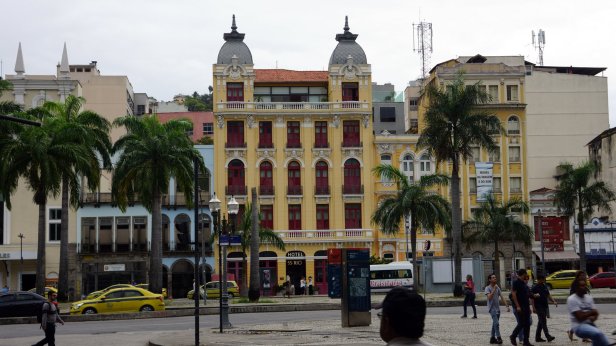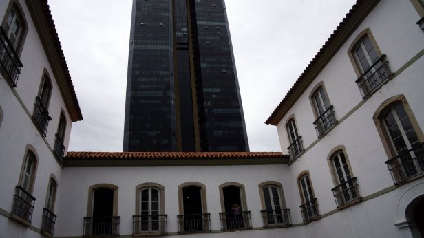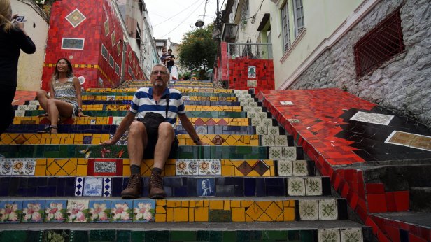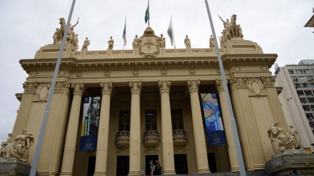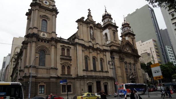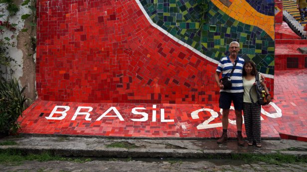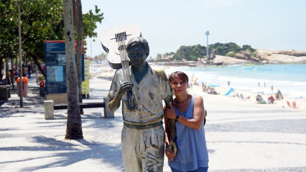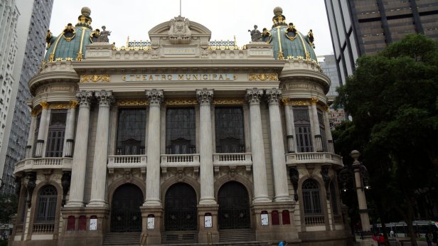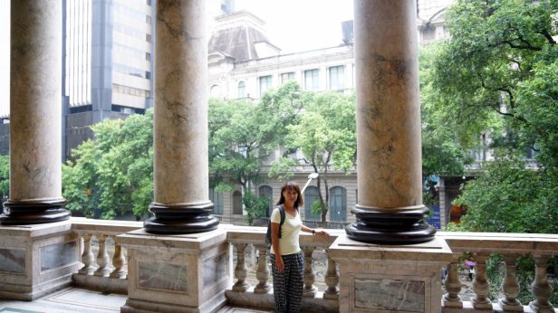 The following day was activity day. Johnny first went withJamaliah for a 7 km walk around a nearby inland lake and in the afternoon Rudy and Johnny went for a bicycle ride along the beaches and also around the lake.For the rest it was relaxing in the beautiful penthouse. On Friday we took the metro to the centre of the old town. Jamaliah held on to Rudy and made sure no pickpocket was around in the packed subway. Our experience from Santiago was still fresh in her mind. At the Carioca metro station we joined the free city walking tour. Although the centre is full of high-rise buildings there are still some small streets in-between lined with 19th century houses. At plaza 15 November we entered the Paco Imperial where the royal family temporarily lived when they fled Portugal from Napoleon in 1803. They enjoyed the climate in Brazil so much that they decided to stay and took on the title of emperor. One of the later rulers even proclaimed the independence of Brazil from Portugal. The arrival of the royals and the growing income from the coffee and sugar trade enabled the city rulers to tear down the houses of the poor and build large impressive buildings. Some of them we visited along the walking route. We also took a tour inside the overdone Opera house (Teatro Municipal). The inside is covered with various colours of marble. The foyer is decorated with motives from the old Persian empire. Now we have seen all three of the Opera houses (Buenos Aires, Sao Paulo and Rio). It started to rain and temperature dropped. To round off the day we had diner in Grotta Ipanima. It is a typical local restaurant annex bar. Here the famous song about a girl van Ipanima was written. She passed daily by on her way to the beach and made the heads turn.