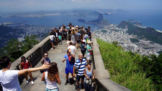 The walk to the minibus taking us up the mountain was a bit further than expected, so it was a great relief that the bus was not full and the air-con was working. It was a hot day. The drive to the mountain is very steep in places. At a flat section there is a shop and bus exchange point where you go in another bus for the last stretch. They make sure these busses are full in order to minimise traffic on the narrow winding road. We were lucky that it was not too crowded at the top. There was ample space and time to admire the 38 m high open arm statue and the views of the city below. We were very lucky to be able to see Christ clearly (without the fog). As was not the case of the two following days. He was totally hidden in the clouds.