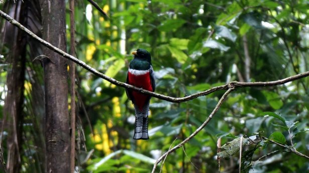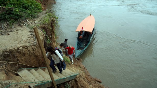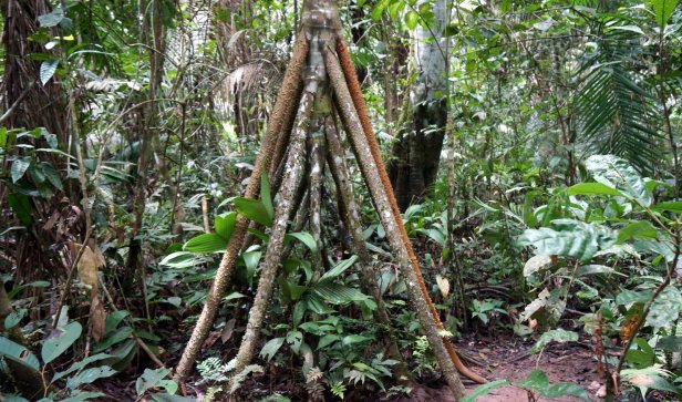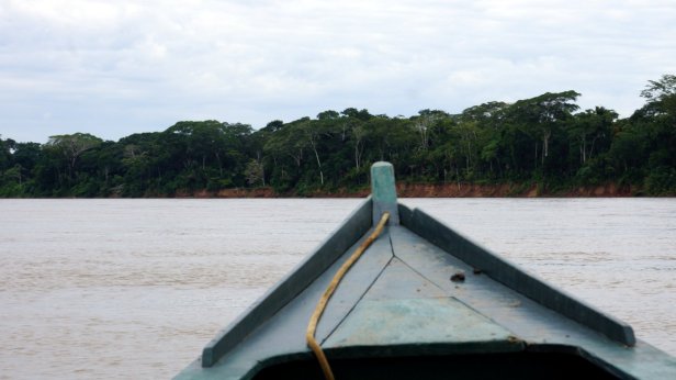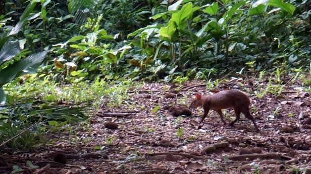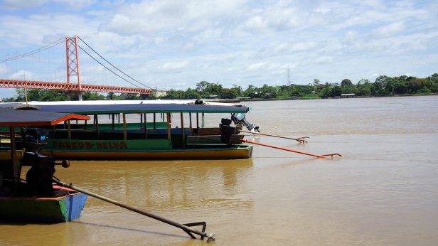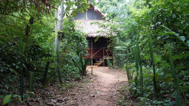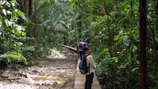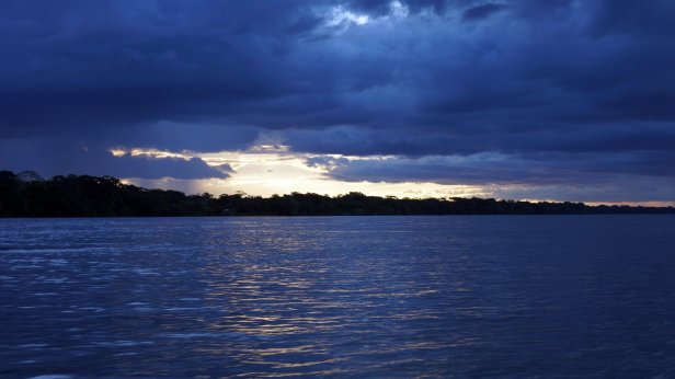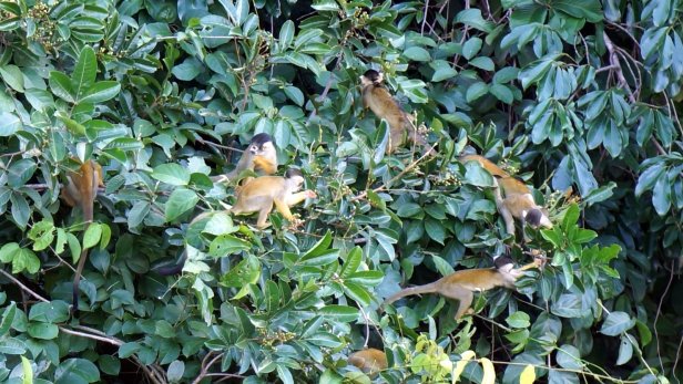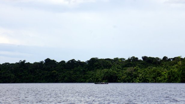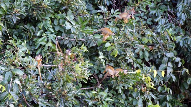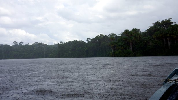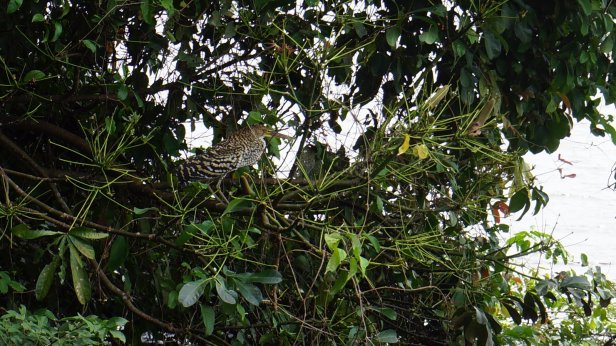 In the swamp before the lake, you board a canoe and first paddle through the forest which than opens up into the lake. When we paddled across the lake we had a good downpour (rain) but fortunately it cleared so that we can have a dry packed lunch (rice with chicken, rolled in a banana leaf) at one of the jungle lodges along the lake. We were not lucky enough to see the large otter or any caiman during our visit. We did however see a fair amount of birds and monkeys.