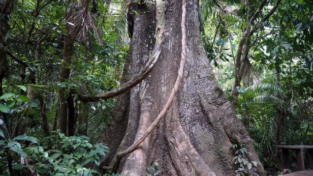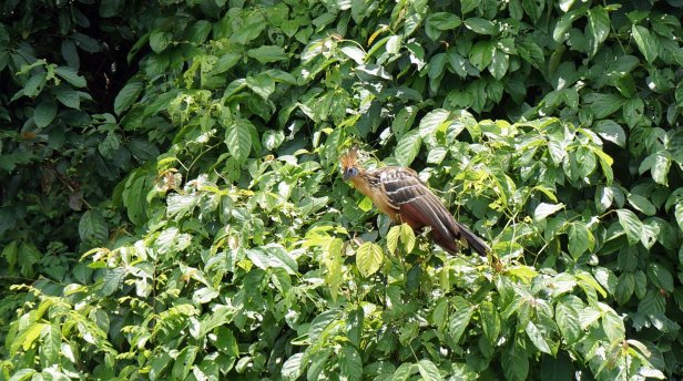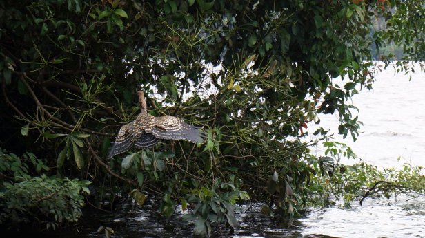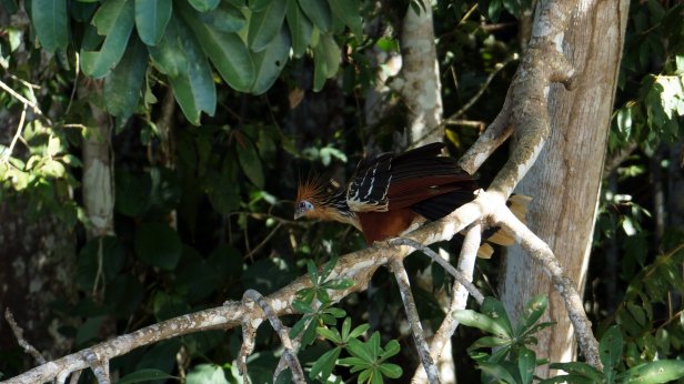 There are several nature reserves around town and tour agencies who organise trips up the rivers to them. Often such a trip includes an overnight stop in a jungle lodge. We opted for a one day jungle excursion. With a motor boat we were brought to the start of the trail through the jungle to lake Sandoval. In some stretches you walk on a boardwalk while at others you slugged through the mud. Apparently these stretches are there so the animals can cross the path. Along the path the guide points out the various trees and birds (if spotted). There are a large amount of palm trees of various types in the jungle. I suspect this is because it was an old river bed which is slowly filling up. Therefore the jungle development is not old and it is still very wet.