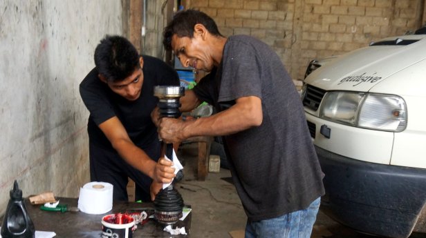We waited for some 6 days for the spare parts to arrive. They were sent from Germany on the 28th of December and arrived in Lima on the 31st. Luisabel could only post them after New year on Tuesday 2/1 but Wednesday afternoon we could already pick them up. Rudy went straight to a garage and after 3 hrs of struggling they had put it all together again.