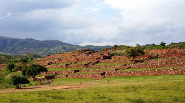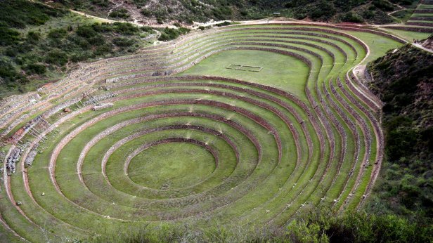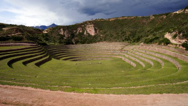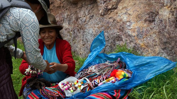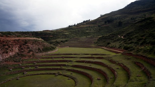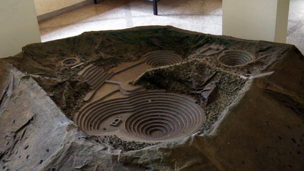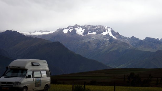 A bit further along there is a detour to Moray. Here the Inca built 3 sets of terraces in a circular shape. Some say it is to try out different crops at different sun angles. Due to its shape plants can grow at 3500 m which normally would not grow at this height. We camped near the ticket booth and had for the first time a lovely view towards snow capped mountains. Finally a quiet camping spot in nature like we had so many in Argentina and Chile.