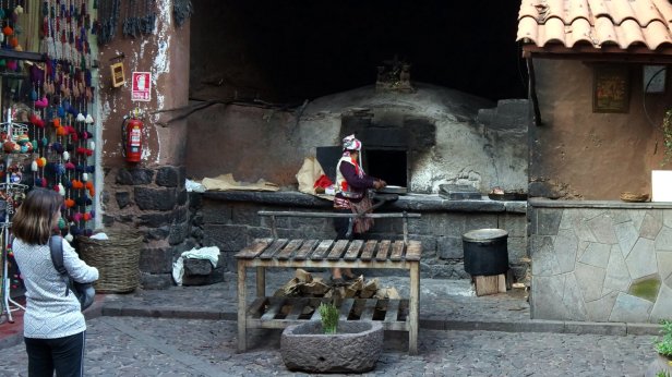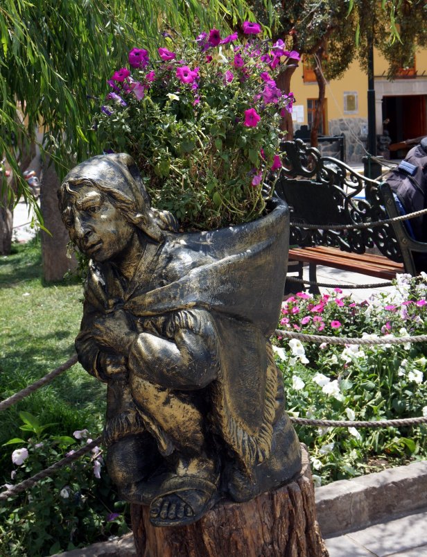Instead of going to Cusco we decided to first visit the towns in the Sacred Valley. We started with Pisaq. The town itself is very touristy with many eating and sleeping places. Above the town on the slopes of the mountain the Inca had built their terraces together with temples and a ceremonial centre. In the side of the cliff you could see the broken open burial jars/tombs. We climb all the way to the top of the terraced mountain and descended down into the ceremonial area. It was a steep descent. We even had to go through a small tunnel. The ceremonial centre was the Intihuatana. This is a large natural rock which is carved in such a way that the sides align with the various annual positions of the sun and some stars.