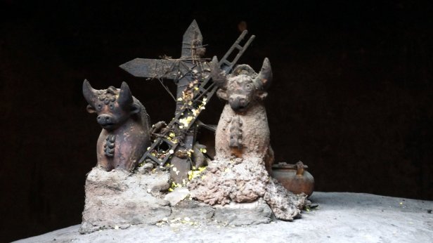 On one side the mountain was carved away and showed o.a. a bath tub which was fed by water running along the side of the mountain though a aqueduct.