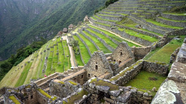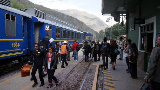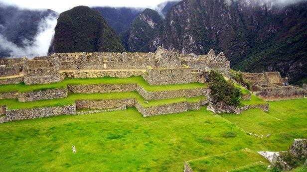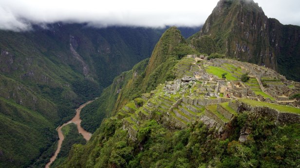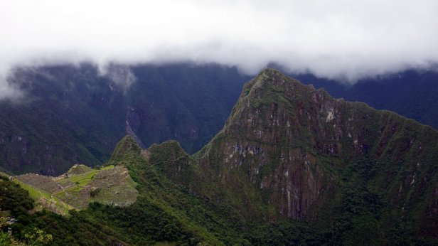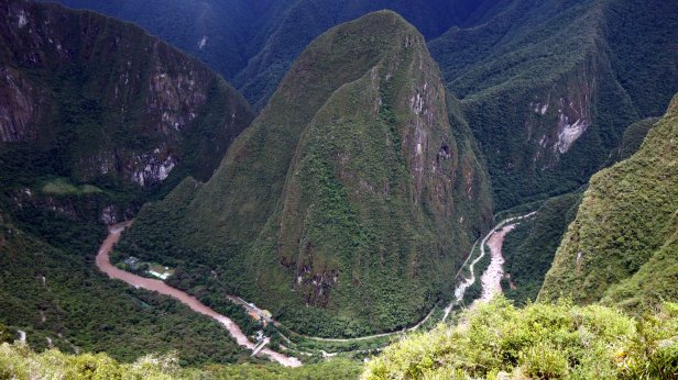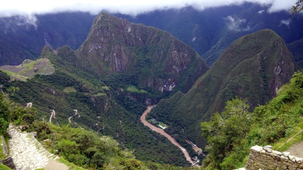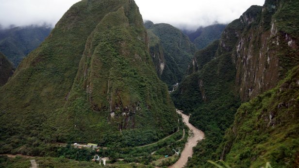 From Ollantaytambo we took the train to Machu Picchu. The train line follows the fast flowing Urubamba river which has cut a steep gorge through the mountains. In the town of Aguas Callientes you board a bus which takes you up the mountain to the ruins.