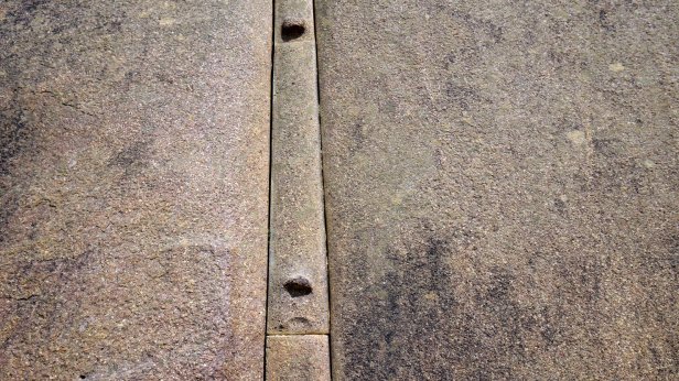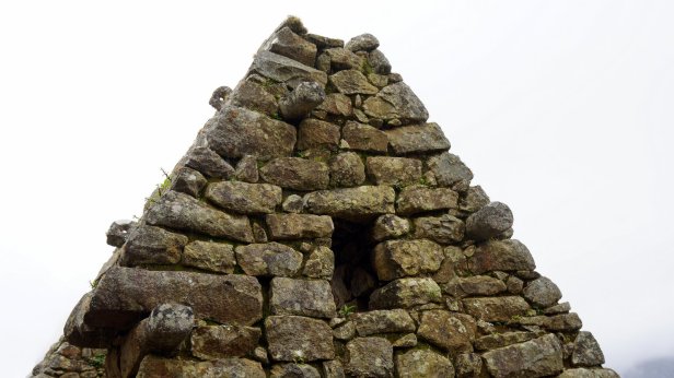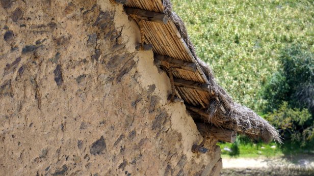 In the walls are stone pegs and stone eyes. They are used to tie the roof construction to the walls so they do not get blown away.
