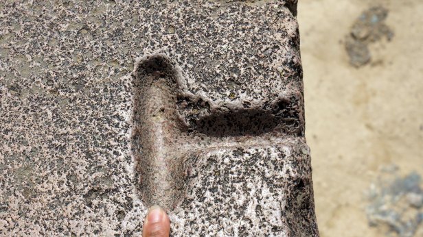 The area has a large central plaza in the middle with on one side the royal and religious buildings and on the other side the residential and industrial sector. The royal section has finely carved walls as opposed to the residential area where the walls are made of lose rocks cemented together with mud.