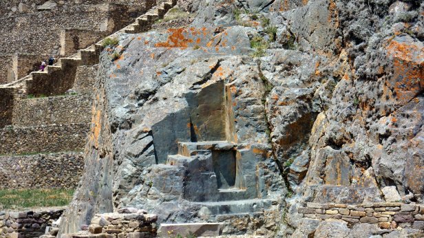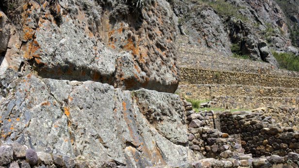 The Ollantaytambo fort was initially successfully defended against the Spanish invaders but ultimately was overrun. Construction of the fort and nearby Inca Palace was still ongoing at the time of the invasion. The area is littered with huge large stone blocks which were partly carved into shape.