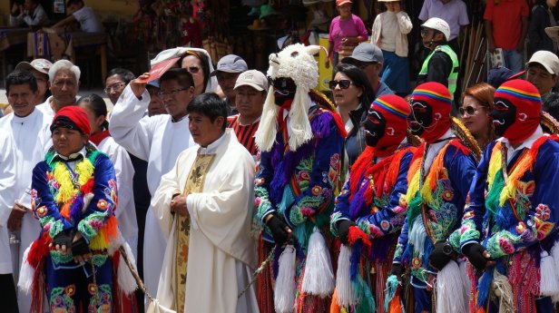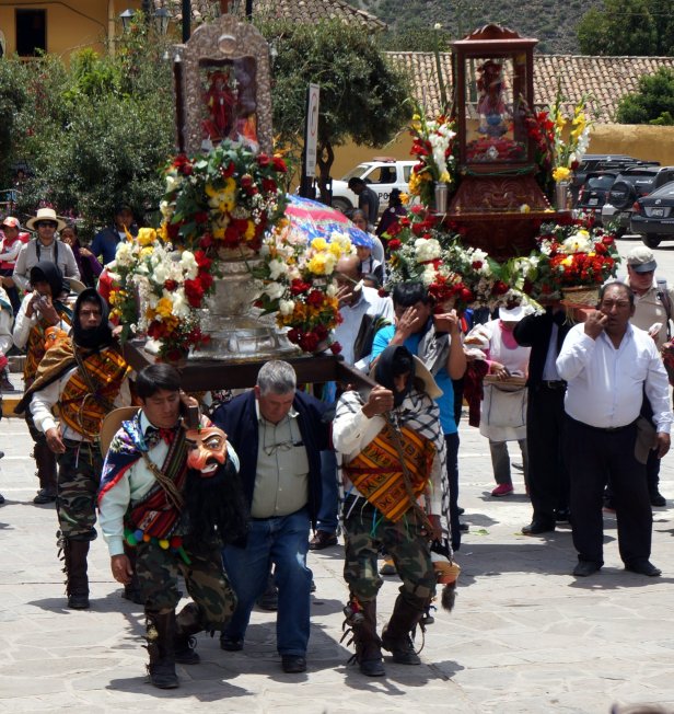 Before we left town we also saw the closing ceremony. This started off in church and was followed by a procession through town with marching bands, dancers and the carrying of local saints through streets and around the main plaza.