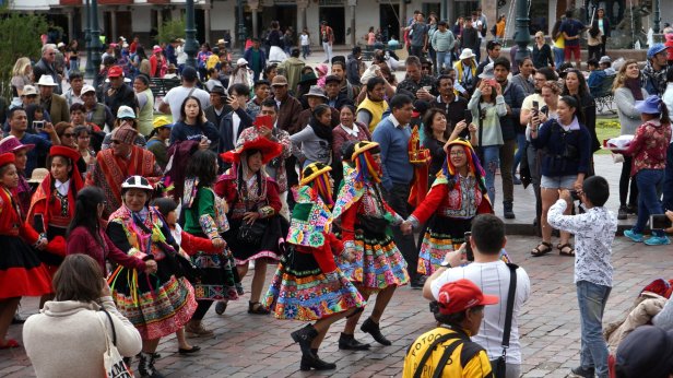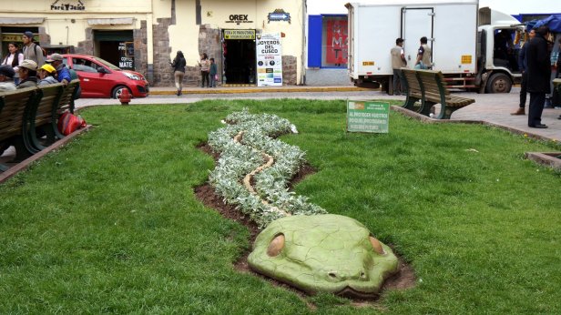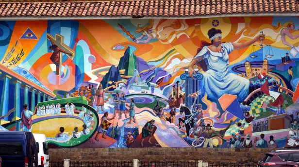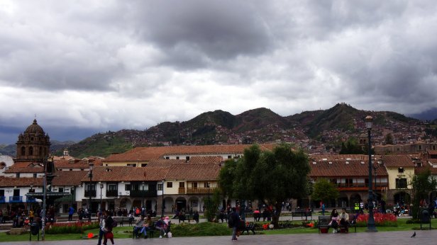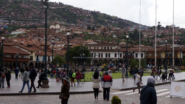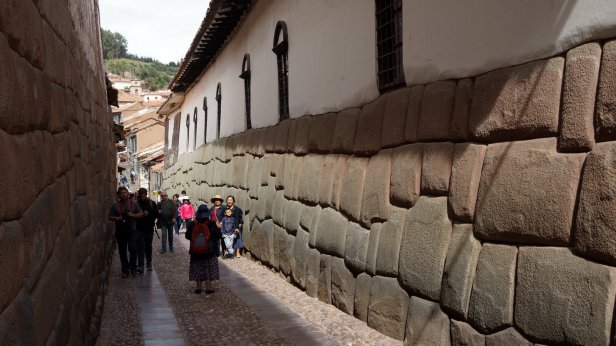 Cusco was the capital of the Inca empire. Each Inca (King) built his own palace in this city and after his death his family stayed in the palace. Because there had been some 12 Inca’s the valley was full of large palace structures when the Spanish arrived in 1532. After conquering the Inca they started to build their city on top of the palaces. So what you see now is narrow streets with stone walls from the Inca’s with Spanish structures on top of them. Some palaces were taken down and the stones used building churches. There are many old churches. Each religious order built their own church and monastery and tried to outdo the other order. On the central plaza des armes there are for example 2 large churches one of which is the main cathedral.