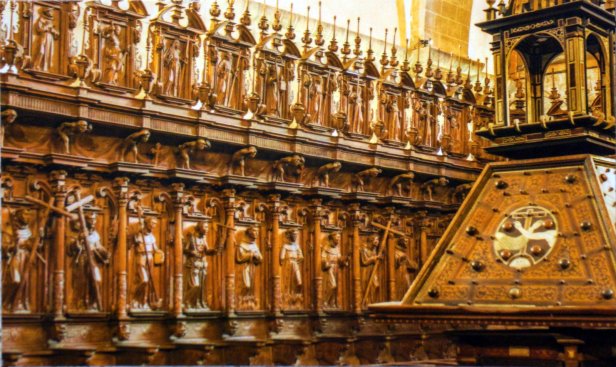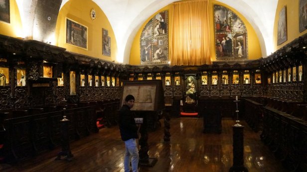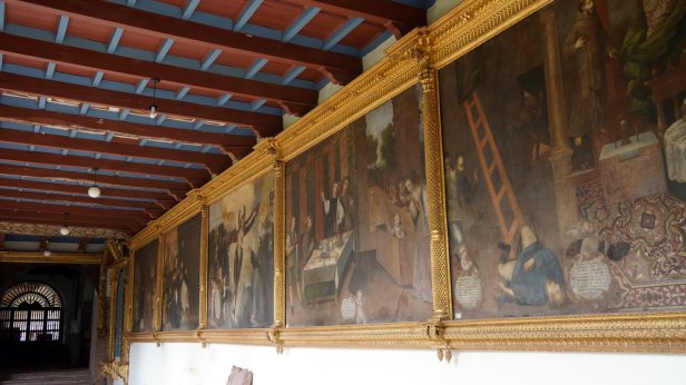 There we went into the main Cathedral. The outside is sober but inside the large number of dedication altars around the exterior walls are shining from all the gold and silver. The walls are not painted but covered with large painting. Unfortunately you are not allowed to take pictures. I hope to add some pictures downloaded from the internet.