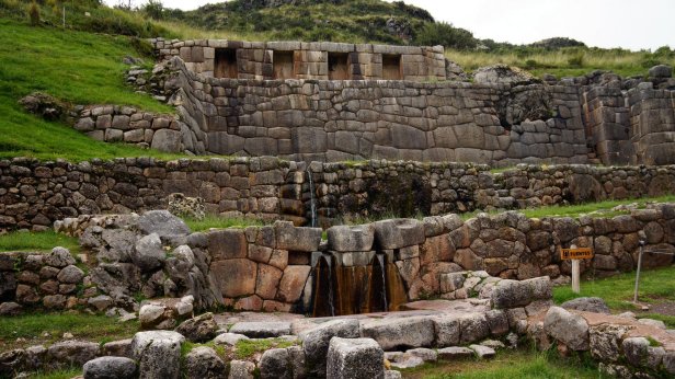 The next day we hired a private taxi which brought us up to several inca ruins in the hills above Cusco. The first was Tambomachay. This looks like it was a country retreat. There is a small structure which cannels spring water over fountains into a bath.