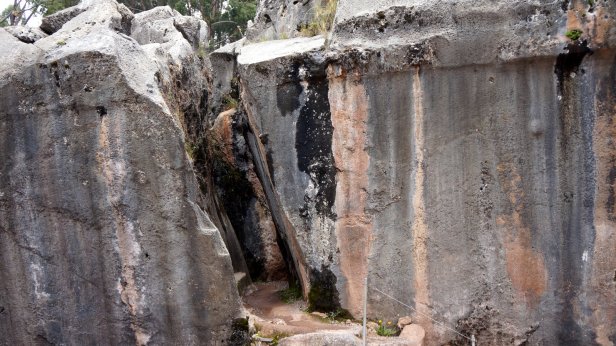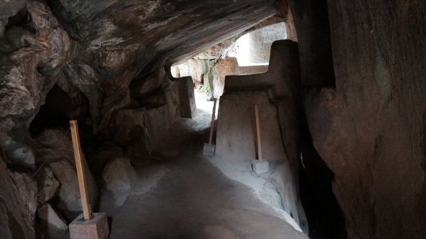 The third stop was at Q´enqo. A large limestone rock was the center pice with around it what looked like stone benches. Underneathe the rock there is a cace with what looked like altars carved out to the wall.