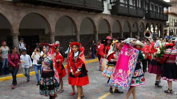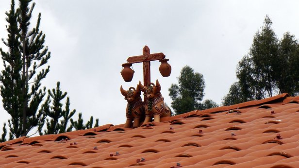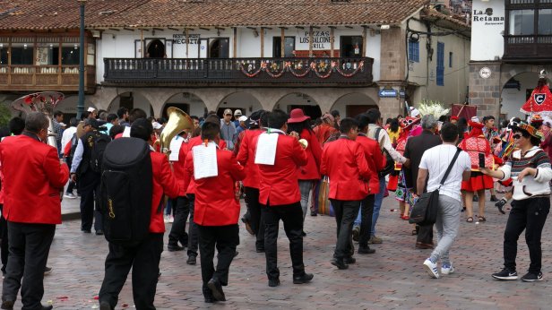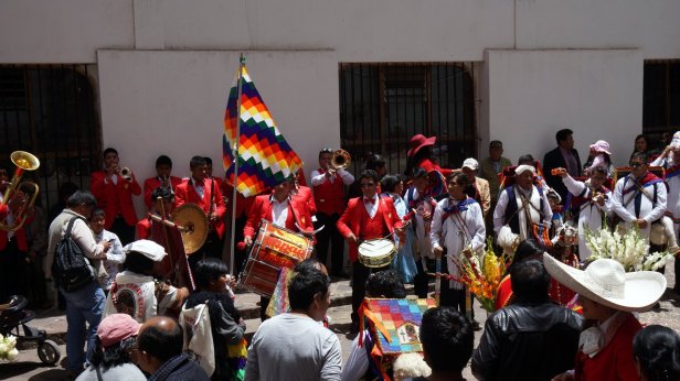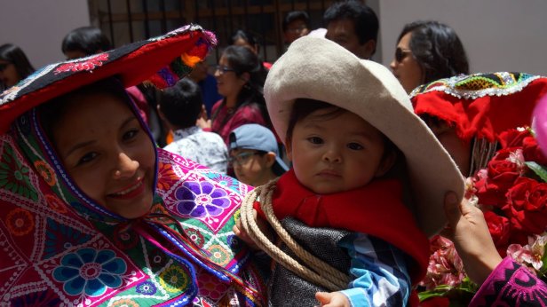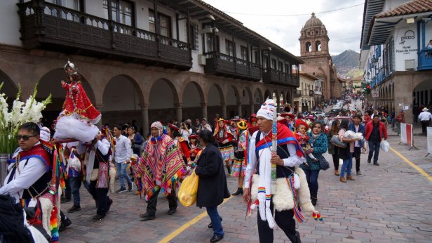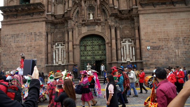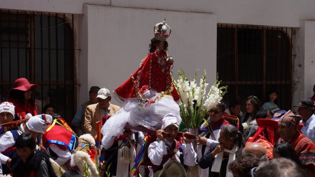 On our last day in Cusco (Sunday) we took the bus into town. An old lady help us to get off the bus in time and she even held us tight when crossing the road. We first visited a church ceremony and then followed the procession which was just starting its way towards the Plaza des Armas.