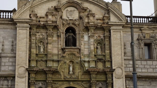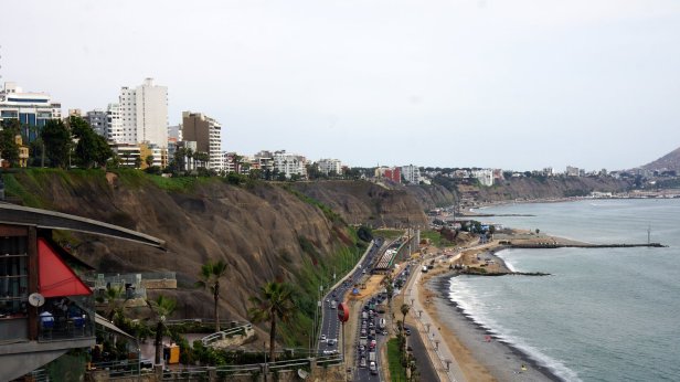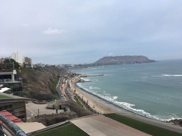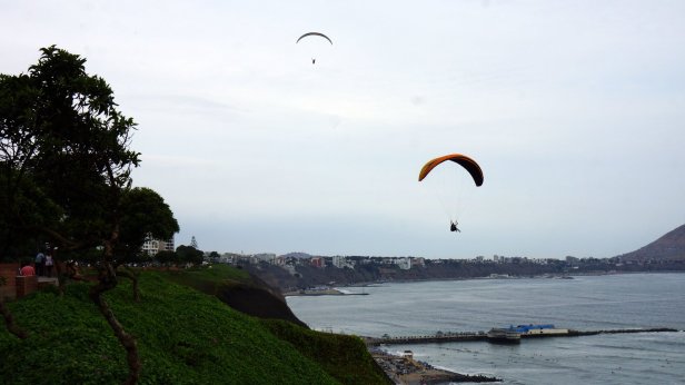 Thanks to Uber were also visited several of the remaining highlights in Lima: The old temple/burial site Huaca Huallamarca nearby in San Isidro. The Monasterio de San Francisco with it catacombs full of nicely laid out bones. The coastal cliffs of Miraflores with high-rise apartments and hotels overlooking the ocean as well as paragliders surfing through the air on the strong coastal winds.