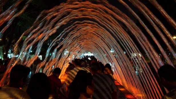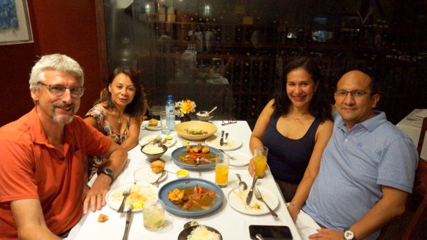 The magical fountains in the Parque de la Reserva where we got soaked by all the splashing of the kids in the water. Together with Luisable and Javier we also went to some fine restaurants. One was next to the other Huaca Pucllana in Miaflores.