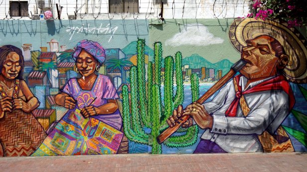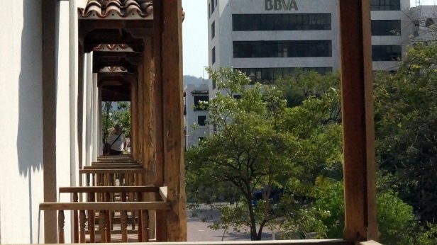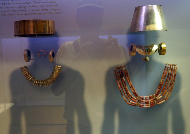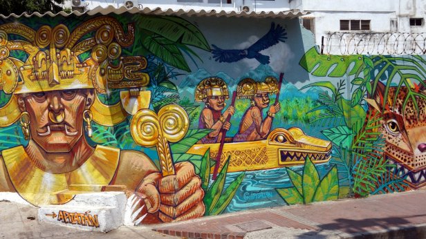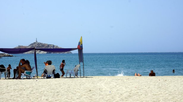 Because we had the time we took the longer coastal road to Cartagena. That gave us the opportunity to visit the beach resort of Santa Marta. Here on the beach you saw the first sun worshipers (sitting in the shade). The beach looked ok but it is surrounded by cranes around the bay. Not too much is left of the old town (it was the first Spanish settlement in Colombia). However they had a lovely museum in an old colonial house which showed some of the gold jewellery worn by the leaders of the nearby the Tayrona tribe. This gold started the search for El Dorado. The gold work is different than the one we had seen in Peru. It is thicker and had more refined curls design on it. Of course there is also a section on Simon Bolivar. This was the house he died in when he went on his self proclaimed exile. He must have been frustrated that after all his liberation wars the countries he help create did not work out the way he had hoped.