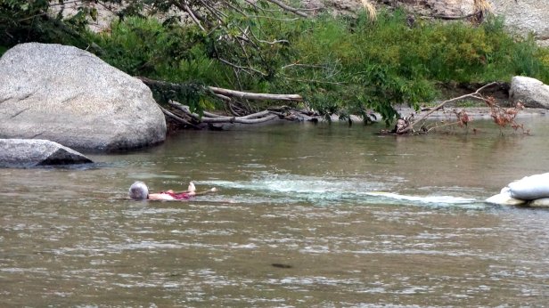 We drove some 35 km further north east on the road to Venezuela and camped at a lovely campsite on a small river valley. It was very special. It would be our last camping in nature on this trip so we made the most of it like Rudy swimming in the shallow water stream.