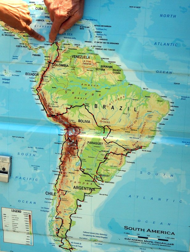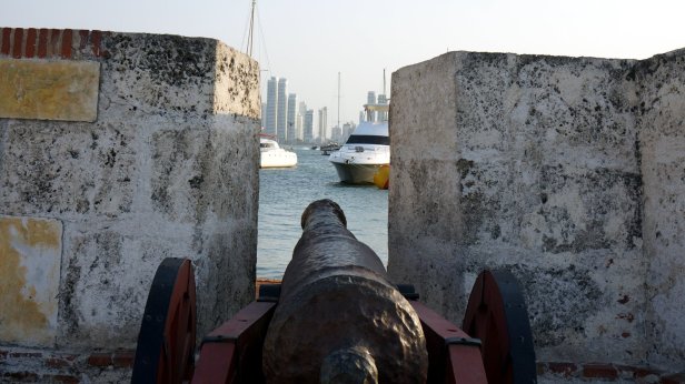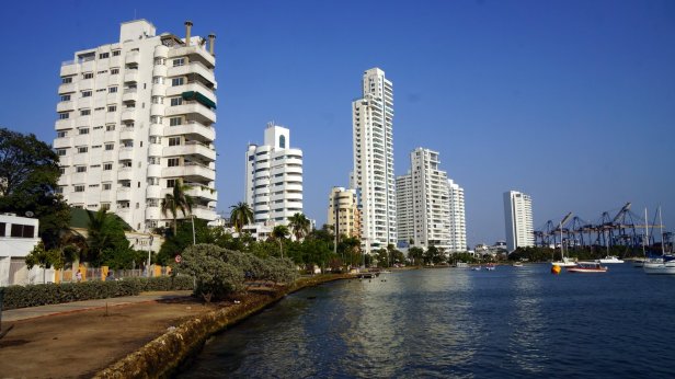 On Thursday 7/3 we drove the final 261 km of our South America adventure to Cartagena. The road runs over a long land spit. It is full of trucks which have to wiggle themselves through the towns. I assume that this will be improved in due course. In fact Colombia is the first country we noticed which actually creates city bypasses. One problem is that they are not indicated, or the navigation system does not recognised them, so we still end up in the heavy city traffic. Also you feel the overpopulation everywhere along the route starting from north Peru. Villages are relatively large and there are many of them. The cities are extremely big with Lima (11.000.000) being one of the largest in the world.