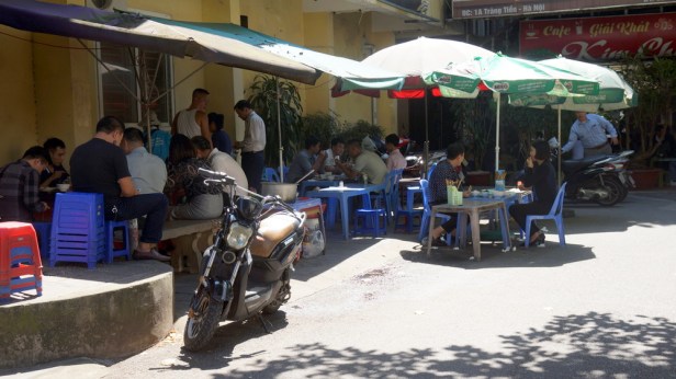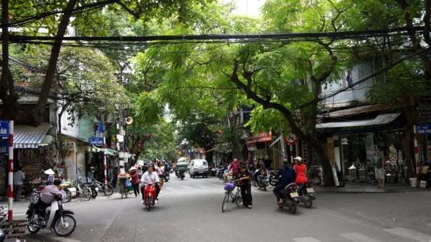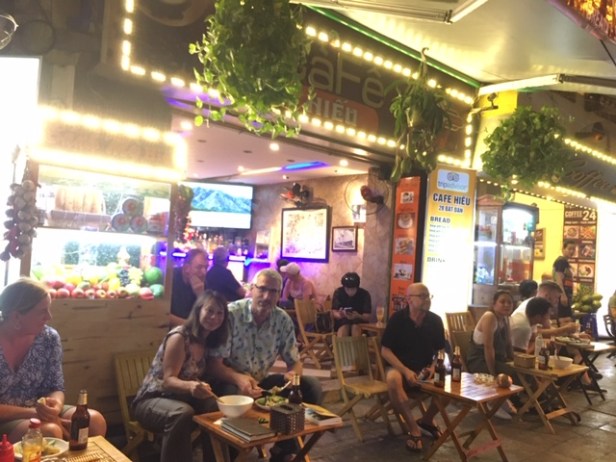 With an overnight stopover in Kuala Lumpur, we arrived in Hanoi today. By the time the visa was put in our passport the long queues at immigration were gone and we entered the country without problems. The driver from the tour operator was waiting patiently and drove us in town to the L’Heritage Hotel in the old quarter. The first part of the drive was over a good 4 lanes motorway through the countryside. In town it got busy. Narrow streets and overall motorcycles. The bicycles must have been upgraded to scooters. The hotel is a narrow tall building like most in the old quarter. We were told this is for tax reasons (pay per street length). The staff is friendly and the room fine. The noise of the street is kept outside with a double glass window. In the evening we walked outside the hotel, along the road looking for some street food. Walking was hampered by all the motorcycles that were parked on the sidewalk. Different than in Malaysia, the street stalls are just a few small tables in-front on the pavement instead of a large plaza with different vendors. The pavement is so narrow, some tables are even encroaching on the street. This is obviously not allowed. During our meal a police van came by and the owner quickly tried to bring some tables inside. However the police managed to confiscated a few. Later some tables were again put out on the street and quickly occupied. A street singer pushing a mobile disco unit came by and filled the street with his loud singing.