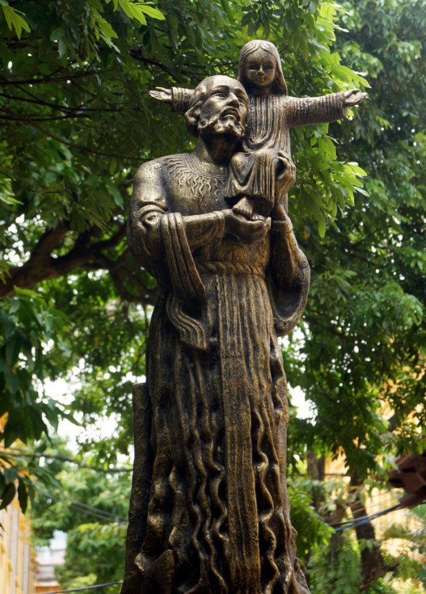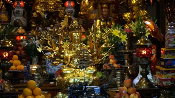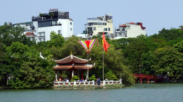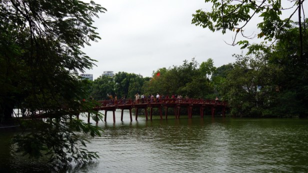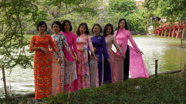 In total we stayed 5 nights in the L’Heritage Hotel in the old quarter. It was the stopover place for our 3 trips into the countryside. On the first day our niece-in-law, Jolene, dropped by. Despite that it took her 2 hrs to reach our hotel she was there at 10 am. We wandered through the maze of streets in the old quarter towards the Hoan Kiem lake which lies in between the old quarter and the so-called French quarters. In the lake is a small temple on an island. It was overflowing with primarily Asian tourists. Along the shores of the small lake, ladies in traditional dress were lining up for a fotoshot with the temple in the background. It was Woman day.