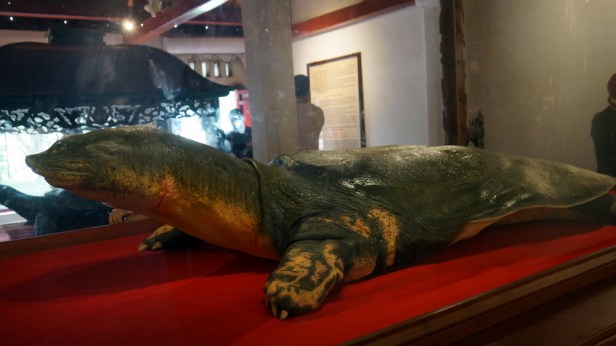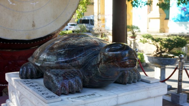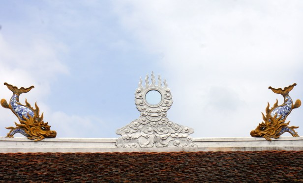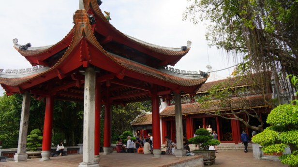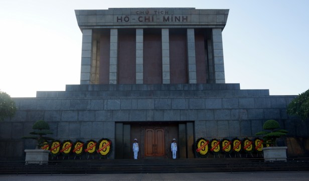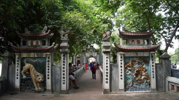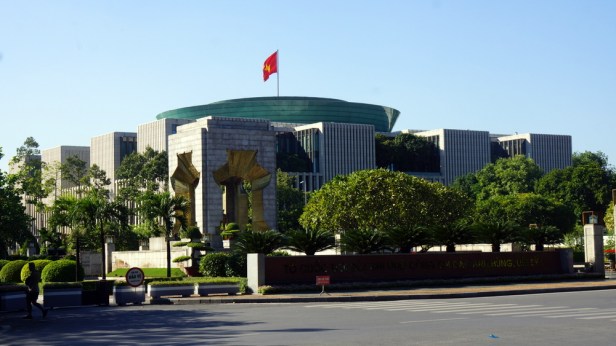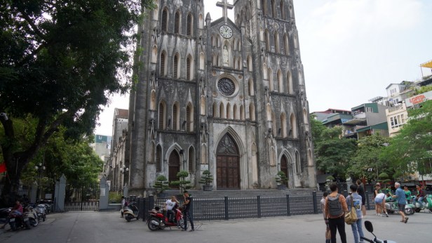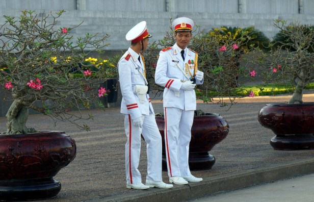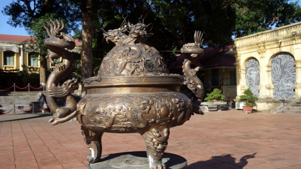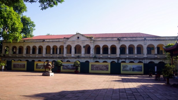 Most European visitors make a so-called food tour to taste the different Vietnamese dishes. We see them passing by in groups when we were sitting on the side of the street for our evening meal. We opted for a private guided walk. Jolene showed us the St. Joseph Cathedral (1886) with the large colonial style buildings around it. On the other side of the lake is the Opera House (1911), which we unfortunately could not enter. Just like all the opera houses in South America it was modeled on the one in Paris. This one was however far less opulent. No large pillars, bronze statues or all colors of marble. Obviously the community here did not need to show off their successful independence for the motherland. In the nearby National Museum of History (1930) the long development of the Vietnam nation was exhibited. Many dynasties had come and gone. A central theme was the struggle for independence from China. In the Imperial Citadel of Thang Long on the other side of the old city the main theme was the struggle for unity of the country in the American war of the sixties. Next door to the Imperial Citadel is the large mausoleum for Ho Chi Minh. He was the leader of the Northern Communistic independence movement. We traveled through town using local taxis. They were not expensive and in this way you did not get lost. We had asked the hotel clerk to write down the site names in Vietnamese and this helped.