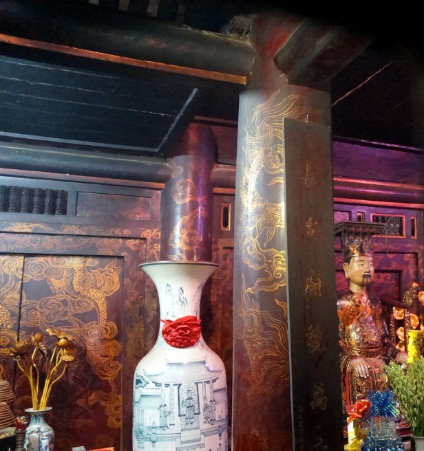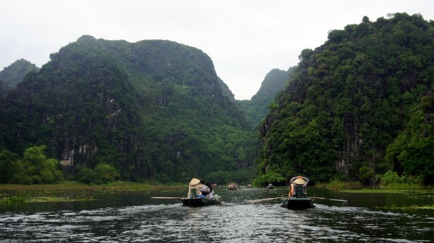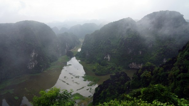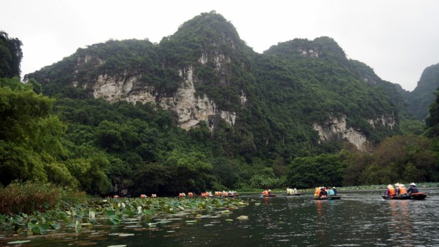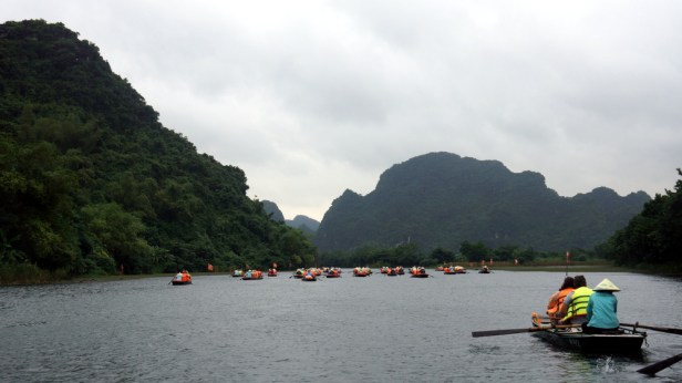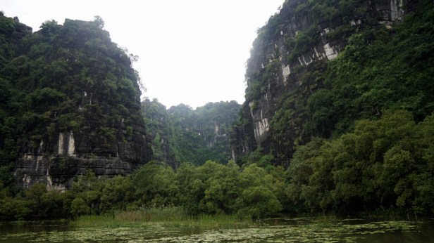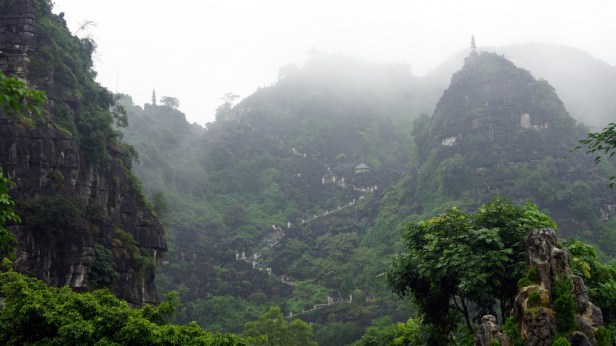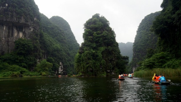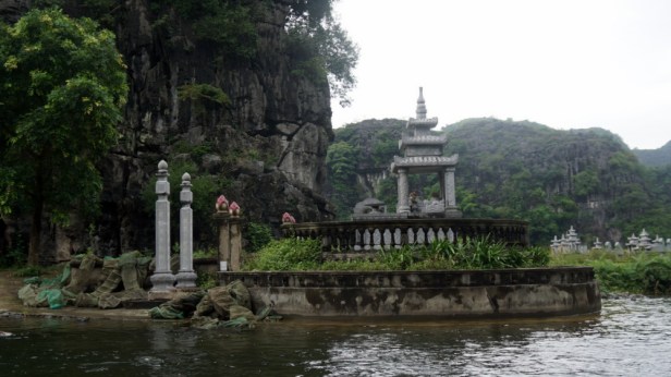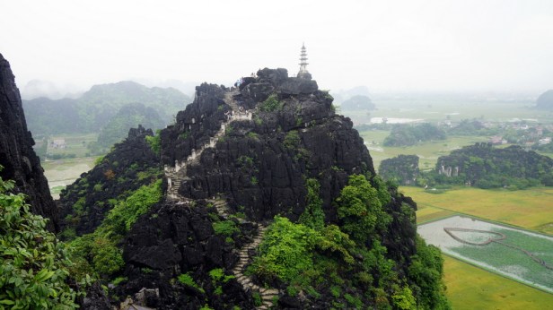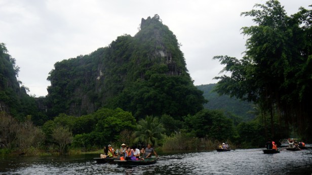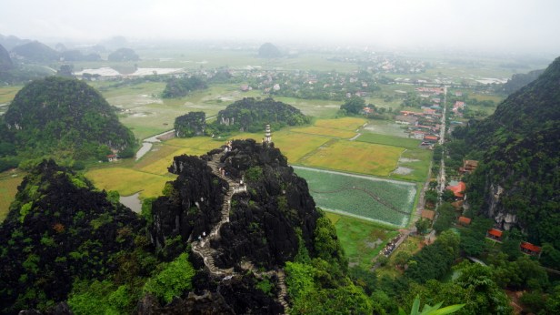 The Ninh Binh area is known for its many karst mountains sticking out of the rice fields. The old capital Hoa Lu (986 -1010) was once here. Now only the temple remains. A bit further along is a second temple complex with a staircase up the mountain towards 2 shrines with a lovely panoramic view of the rice fields below as well as the river winding in between the rocks. In town we boarded a small 3 person sampan powered by a lady tirelessly paddling with her feet. We followed the river through the gorges and even peddled through 3 caves. Later we were given a bike for a short cycle along a quiet road to a nearby temple which was accessible through a cave. The next morning we again boarded a sampan where the lady this time rowed us for 15 km through some 4 other caves. It is a beautiful surrounding. The stream also passed several temples along the way. This area formed the decor for the 2016 King Kong film “Skull Island”.
