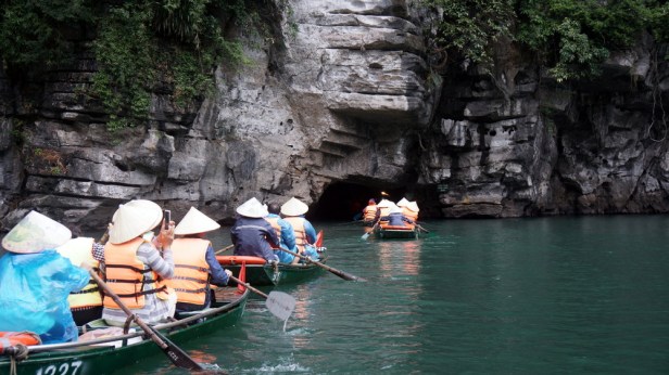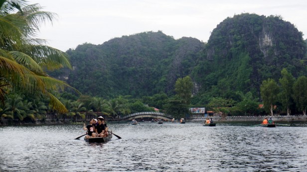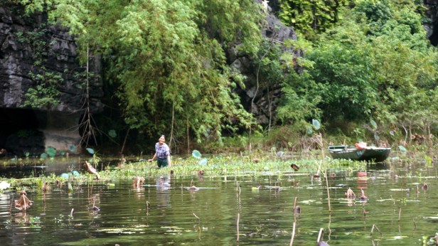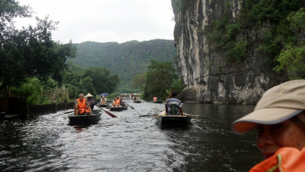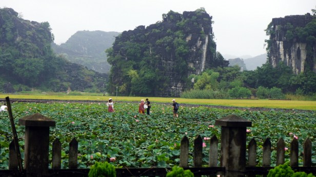 The bus driver was not familiar with the layout of Tam Coc. Large 4 lane roads dissect the small local roads which are built on low dykes through the rice fields. Some lanes were so narrow that, if there was another car coming towards us, there would not have been a way to pass each other. We arrived at our lodge late. A large group of Vietnamese were having a weekend out. Of course karaoke singing was the main activity after dinner. We were too late for our dinner but the owner family invited us to share their evening meal with us.