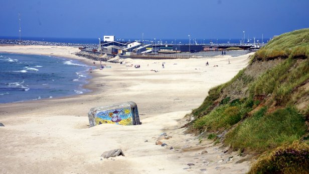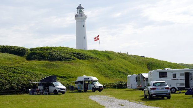 It was 820 km to the ferry in Hirtshals in northern Jutland (Denmark). We made one stopover along the way at Flensburg, just before the Danish border. Fortunately we had our corona papers with us because we had to show them before entering the camping. The camping in Hirtshals is below the lighthouse and next to German defence bunkers (The Atlantic wall) in the dunes along the sea. Most campers there are waiting for the ferries to Iceland, Norway and Sweden.