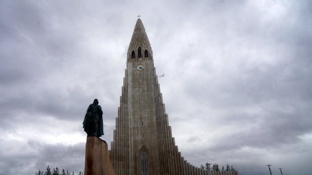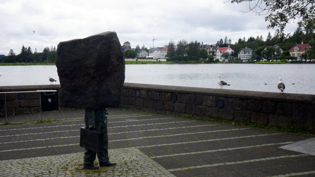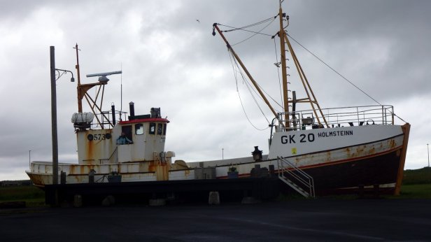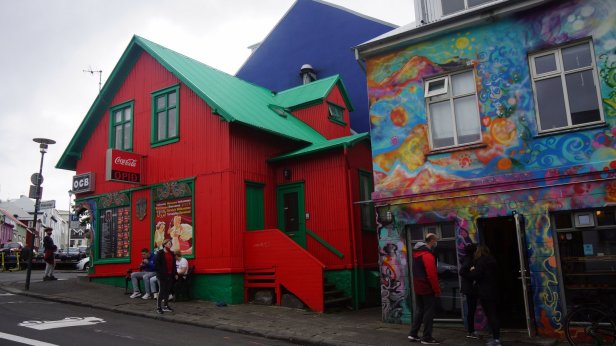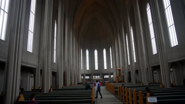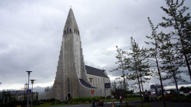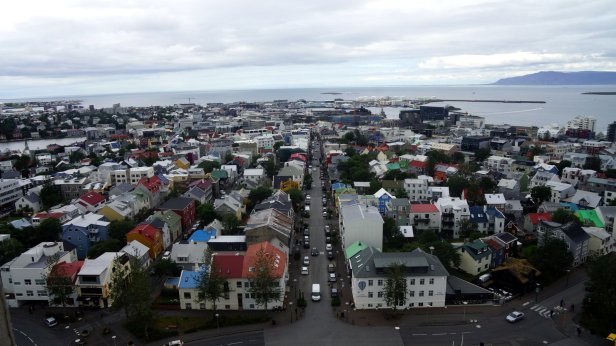Reykjavik is a very spread-out city draped around several bays. The old centre has some individual houses close together along not so narrow streets, but the suburbs have apartment blocks of 2 -3 flours high among the individual houses built on reasonable size plot. The old town houses are built of wood on a stone foundation. The wood is then covered with corrugated iron sheets painted in various colours. It give the centre a colourful look, even in the often gray rainy weather. Our first stop was the settlement museum which is housed in the excavated cellar of one of the old town houses. When renovating the city centre, the ruins of one of the first buildings was found. It is a 10th century Viking long house build up of thick turf walls with a length of 12 m and a width of 5 m. The original had of course large wooden poles to hold up the roof of grass sods. From here we wandered the streets up to the Hallgrimskirkja (1945-1986). It has an outside structure which resembles basalt columns. There is an elevator to the viewing platform in the tower at 74 m. Inside, this Lutheran church is spacious with lots of light and white painted walls. From here we wandered down the hill passing a fish and chips cafe, as well as a bakery with cinnamon buns. The main shopping street has, beside the usual fashion shops, also many places to buy outdoor clothing and equipment. In the evening we camped at the city camping where the Dutch VW camper tour group has set up base.