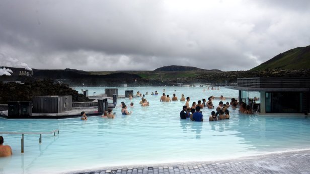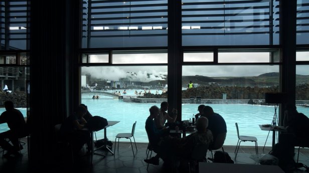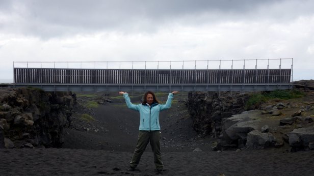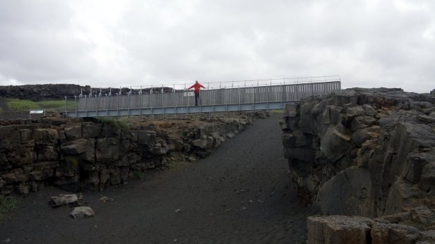 On day 21 we drove again into the Reykjanes peninsula, south west of Reykjavik. We wanted to make another attempt to see the volcano in action. While waiting we toured the whole peninsula including a stop at the commercial Blue Lagoon resort and the “Bridge between 2 Continents”. The Blue Lagoon is formed by the mineral holding water disposed by the nearby thermal power plant. The water is milky blue from the very fine silica powder which is in the water. If you hold the silica paste in your hand all fingerprint patterns are filled and smoothed out. Since we had made no reservation, we were not allowed in the pool but did the next best thing and walked around the lagoon. We camped in Grindavik and kept an eye on the webcam to see if there was activity at the volcano.