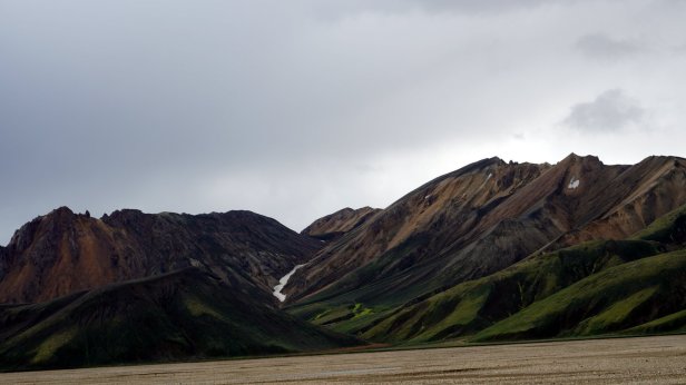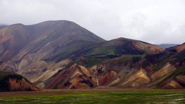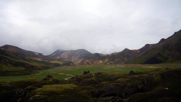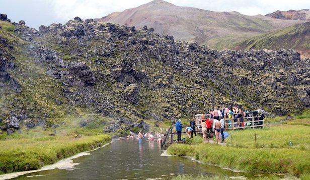 After a short sleep, we drove on to Landmanna Laugar, some 230 km north east. This is a lovely valley in-between very colourful mountains. Despite that you can only get here with a 4×4 and 2 rivers to cross, it was very busy. It is the main hiking area of Iceland. The tent area has 30+ small tents and the car park is full of buses taking tourists up from Reykjavik. They all left around 15:00 hrs. We waited a bit longer to try the hot pool (i.e. till the private cars have also left and the hot pool is not crowded and the rain has stop). The pool is in a small stream with a gravel bottom. It is shallow (50 cm) and is fed by 2 small steams. One hot and the other cold. In this way you can chose your desired temperature by moving around the pool. Jamaliah did not feel like going because there were warning signs that some people get rashes from the water. Rudy spent a good hour in the pool without side effects other then maybe some overheating. The evening at 600 m was colder than usual so he did cool down rapidly. Actually we went to bed early to stay warm under the down sleeping bag. The diesel heater has not worked during the whole trip.