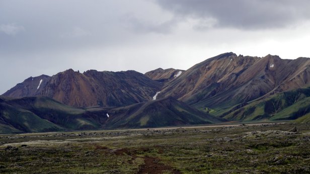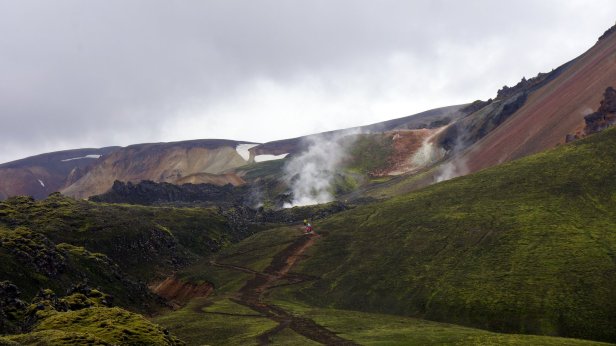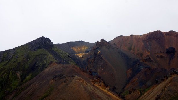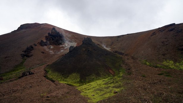 Day 23, we slept out as usual to around 9:00 (at least Rudy) despite the early night yesterday. After breakfast we planned to take one of the loop routes through the nearby mountains. Just before we wanted to leave it started to rain heavily. When it had cleared up we started the walk. Unfortunately the first tourist busses started to arrive and it was bussy on the track up and over the mountain. The walk was very beautiful. The volcanic mountains here have many colours. Not just the dull black but ochre and white with sometimes a green sheen over it. The walkers with the large rucksacks make the 4-5 day trek over the mountains towards the coast. That seems like the thing to do (when you are young).