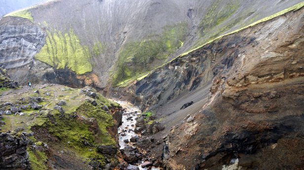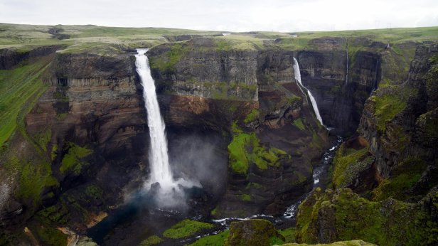 We, instead, drove out the same hobbely road we came in. Along the way we made a detour towards Haifoss. Yes another waterfall but actually this one was special. Two large streams fall of a 130 m high cliff into a canyon which quickly opens up into a valley. There is a lovely viewing site from the top but if you want you can go all the way to the bottom close to the splash zone.